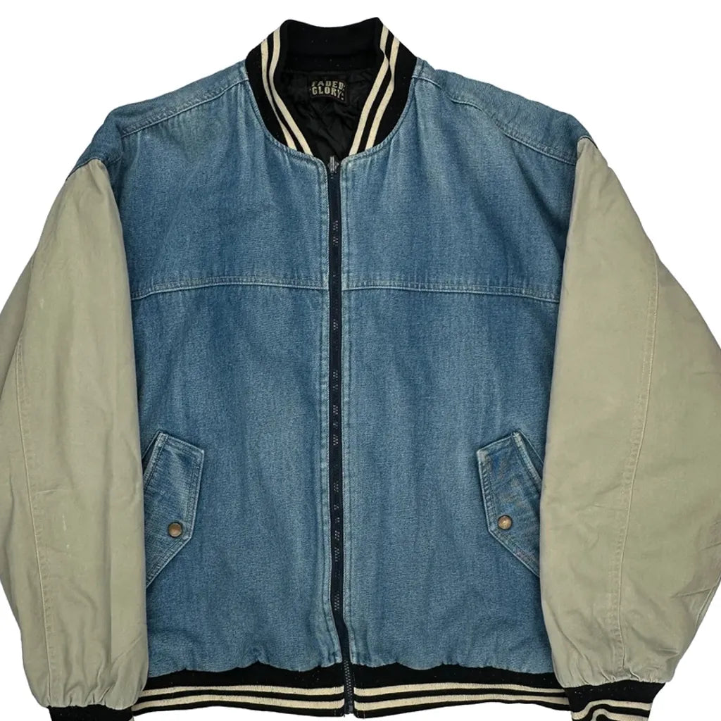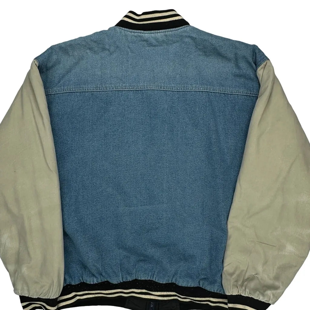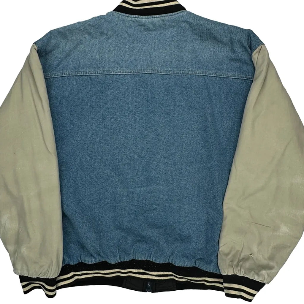 Denim Faded Glory Varsity Jacket - Large Blue Denim