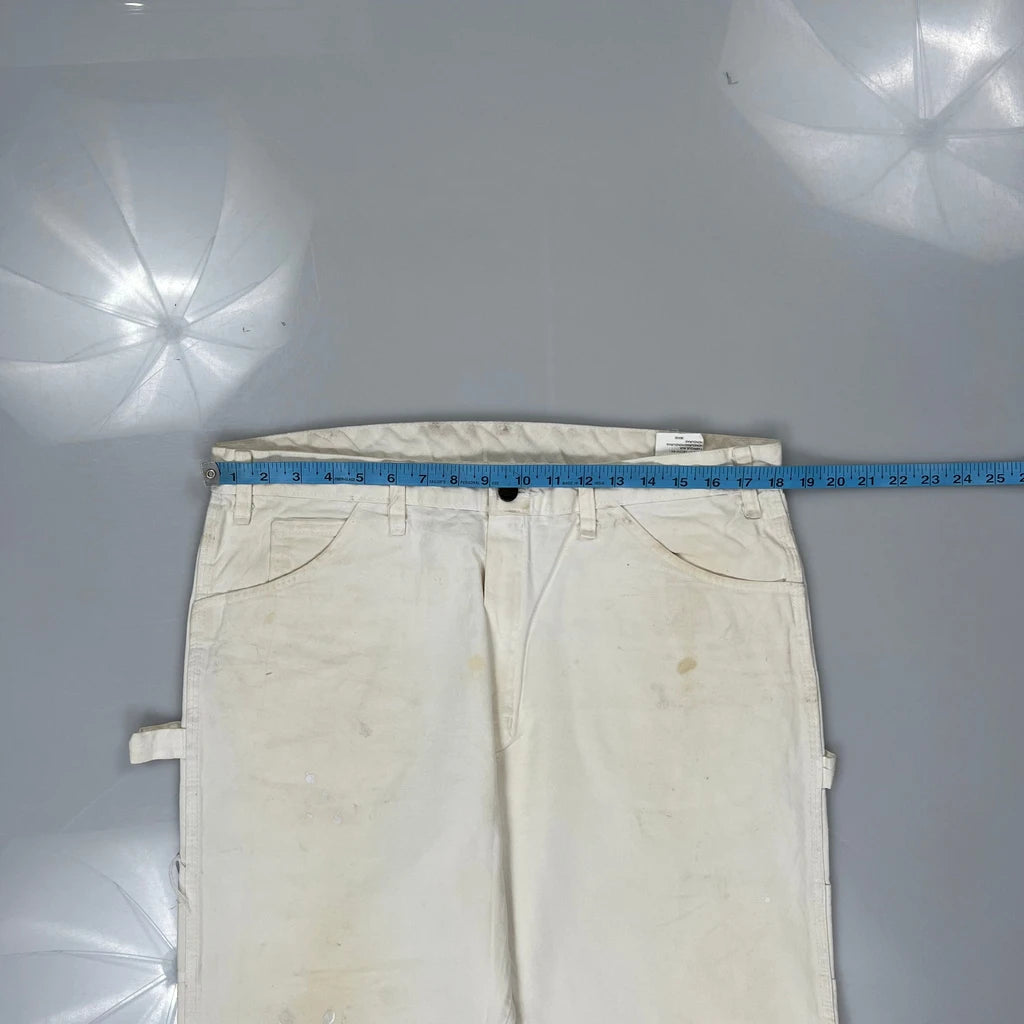 Dickies Double Knee Carpenter Trousers - 36W 30L White Cotton