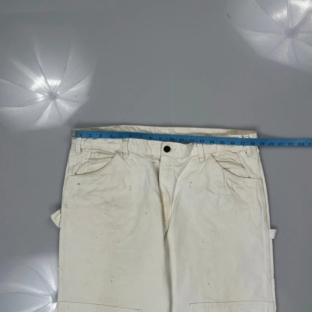 Dickies Double Knee Carpenter Trousers - 38W 32L White Cotton