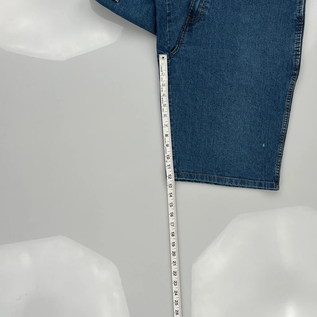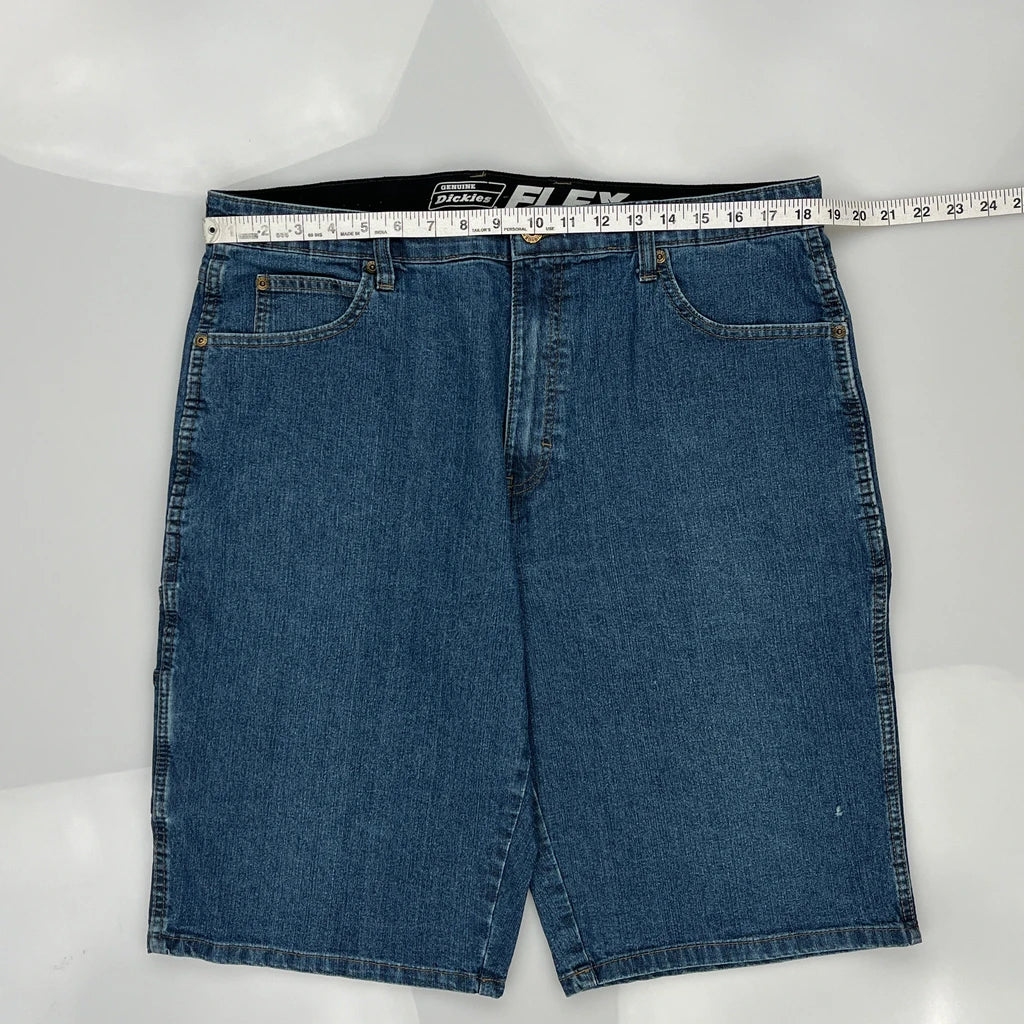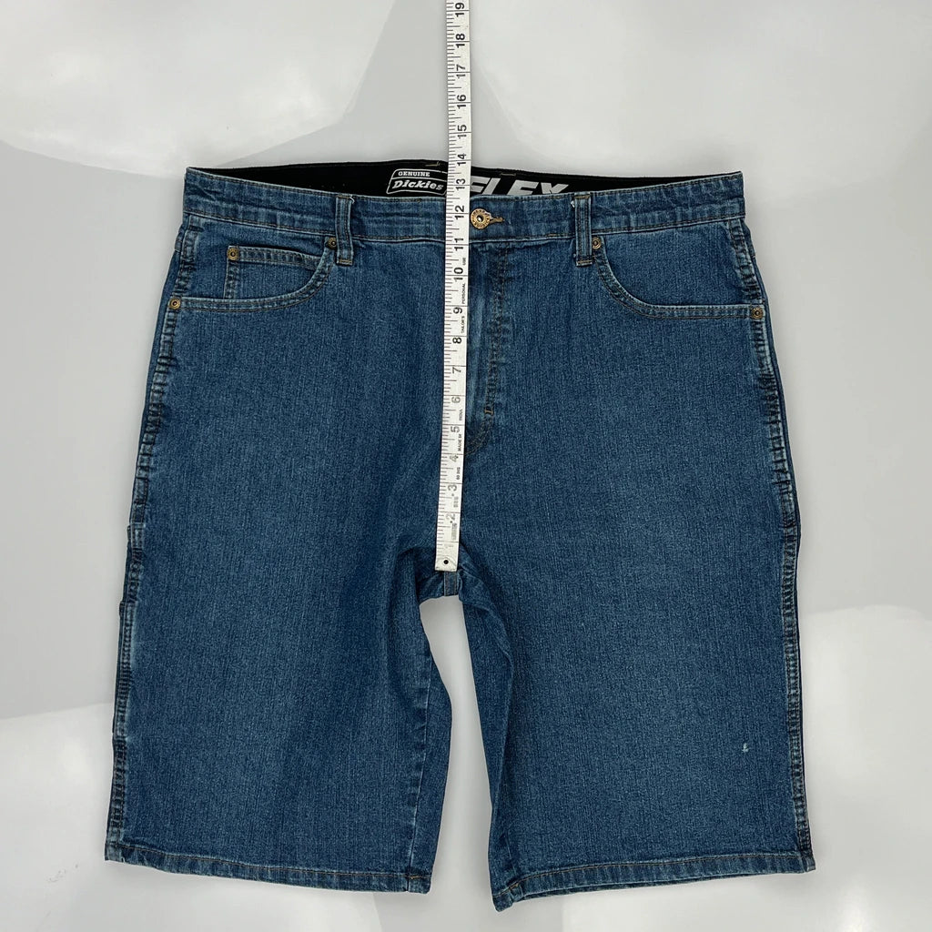 Dickies Denim Shorts, fit a 36″ Waist and 12″ inseam.