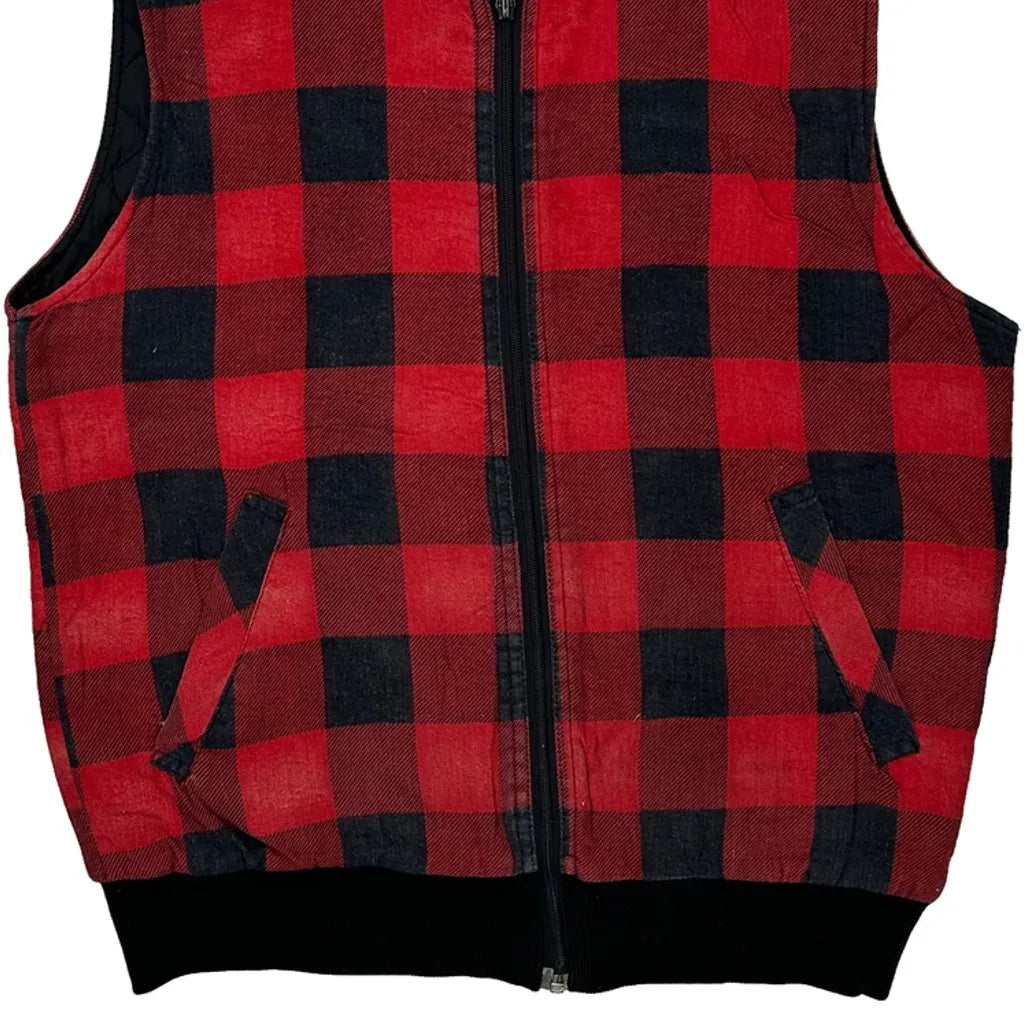 Red And Black Checked Gilet With Zipper Closure