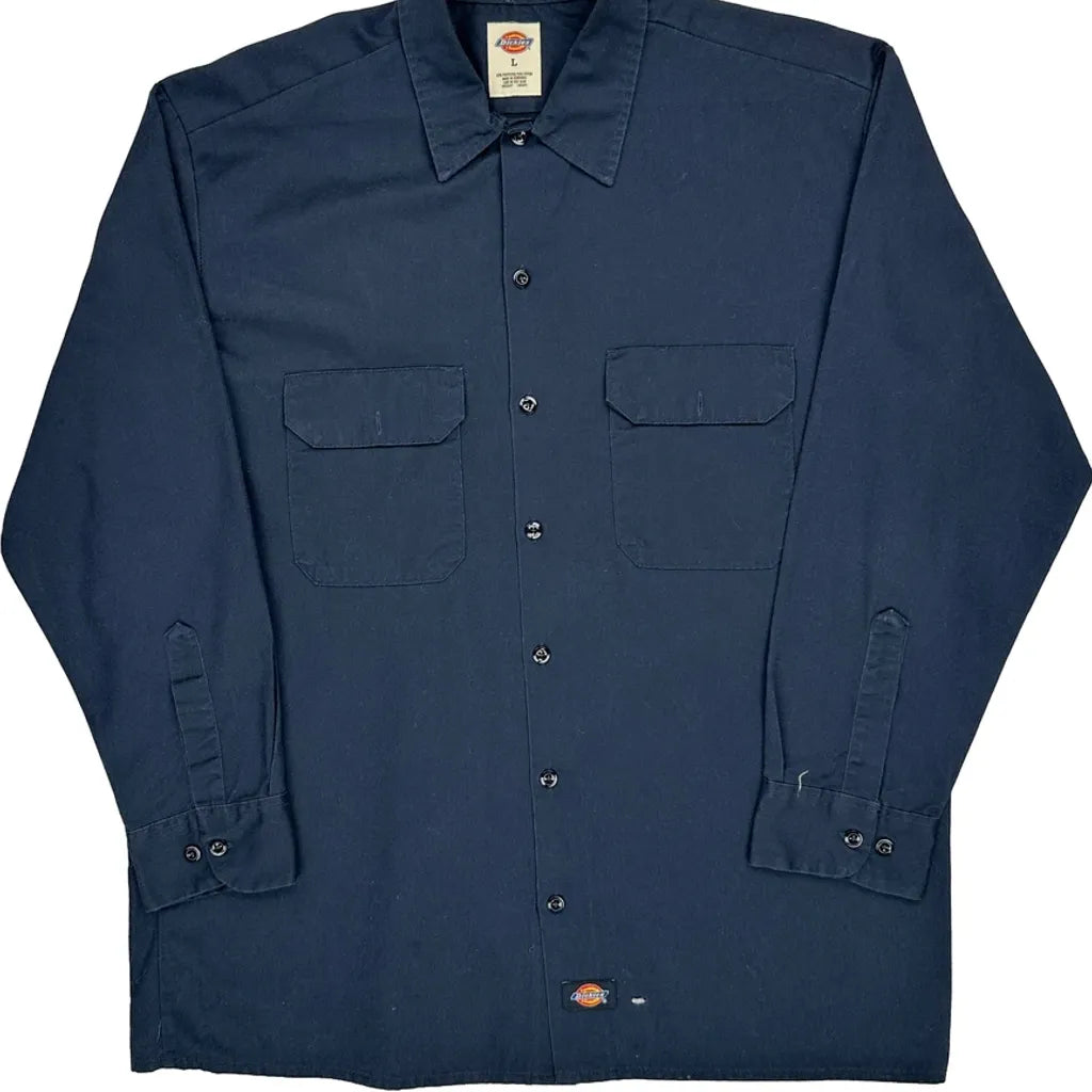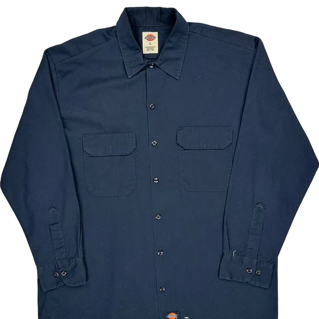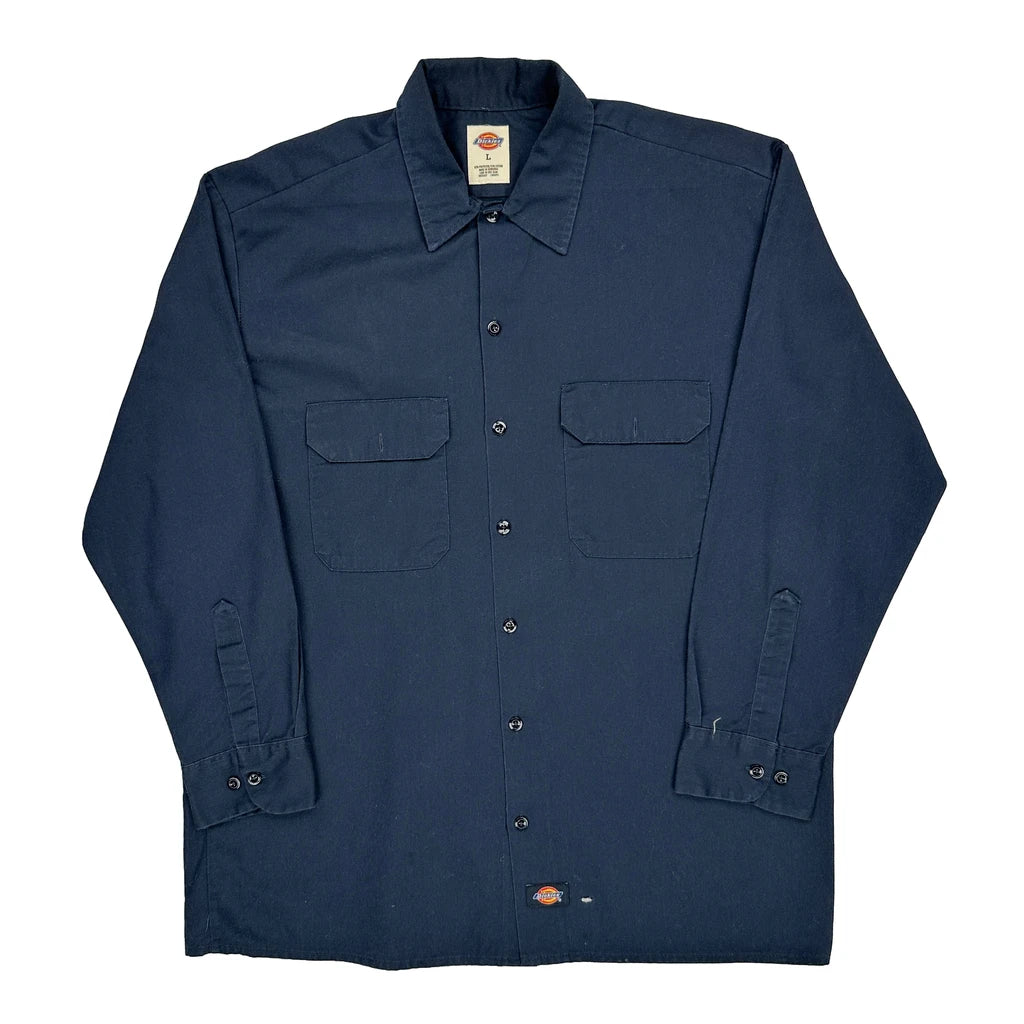 Dickies Shirt - Large Navy Polyester Blend