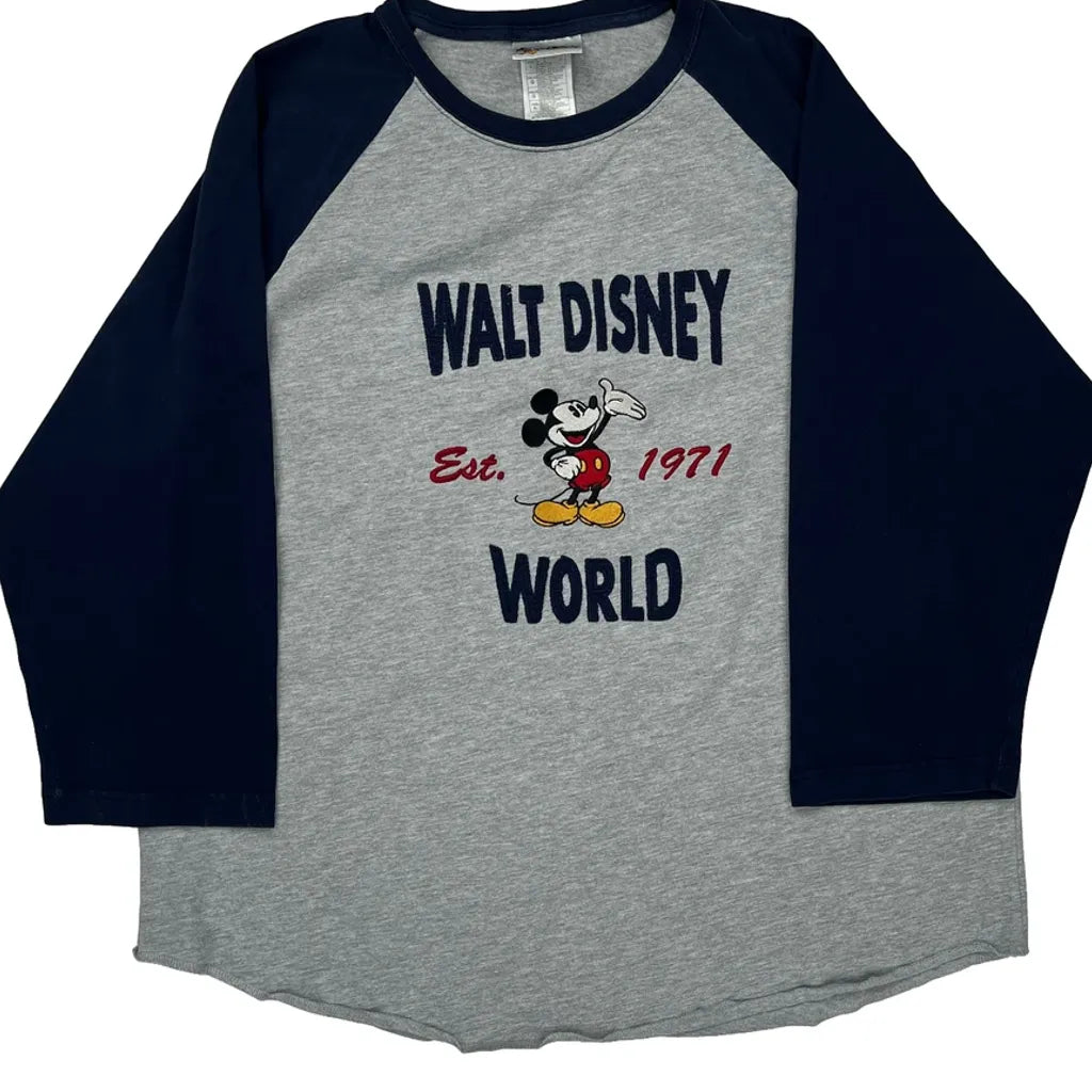 Disney Graphic Long Sleeve T-Shirt - Large Grey Cotton