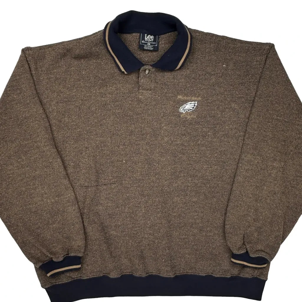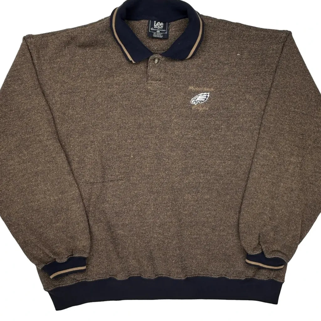 Eagles Lee Sport Polo Sweatshirt - Large Brown Polyester Blend