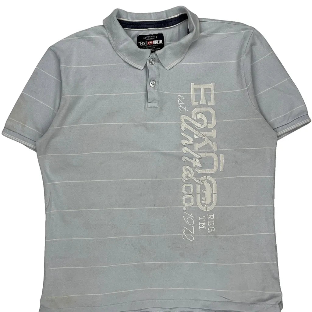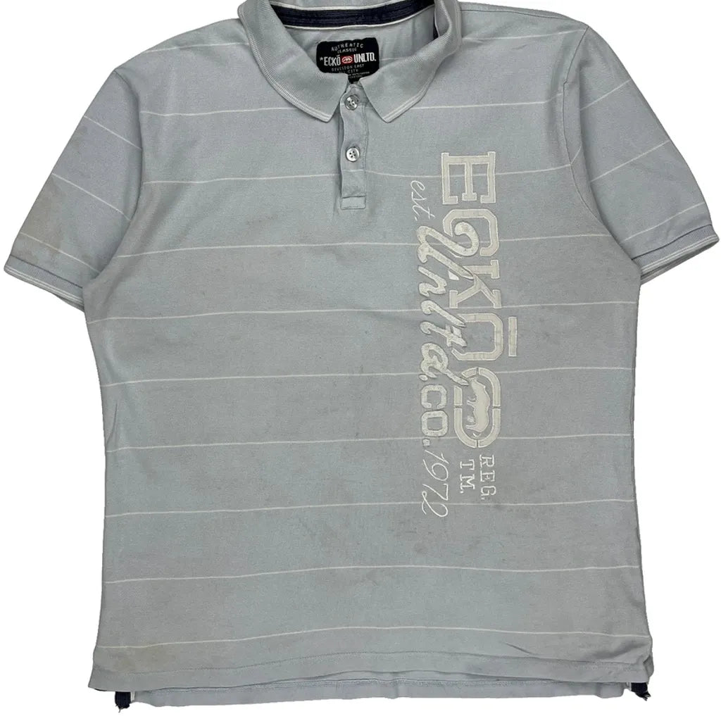 Ecko Unltd Striped Polo Shirt - 2XL Grey Cotton