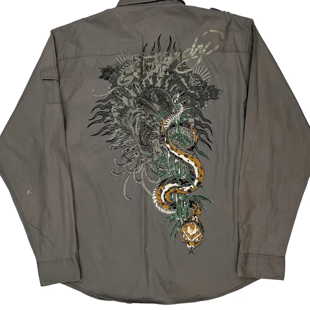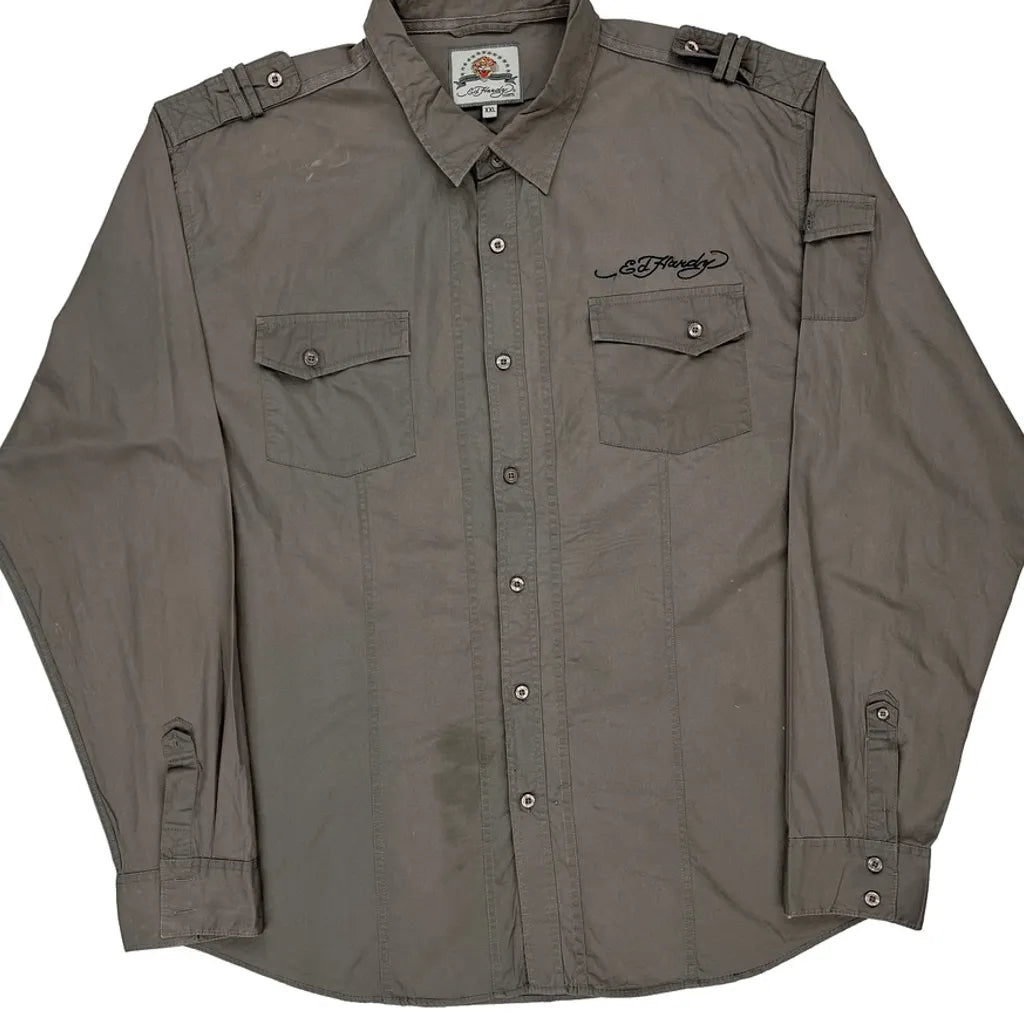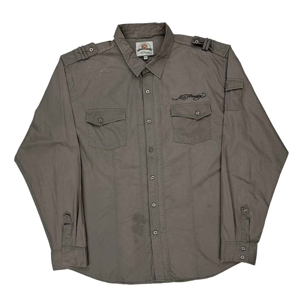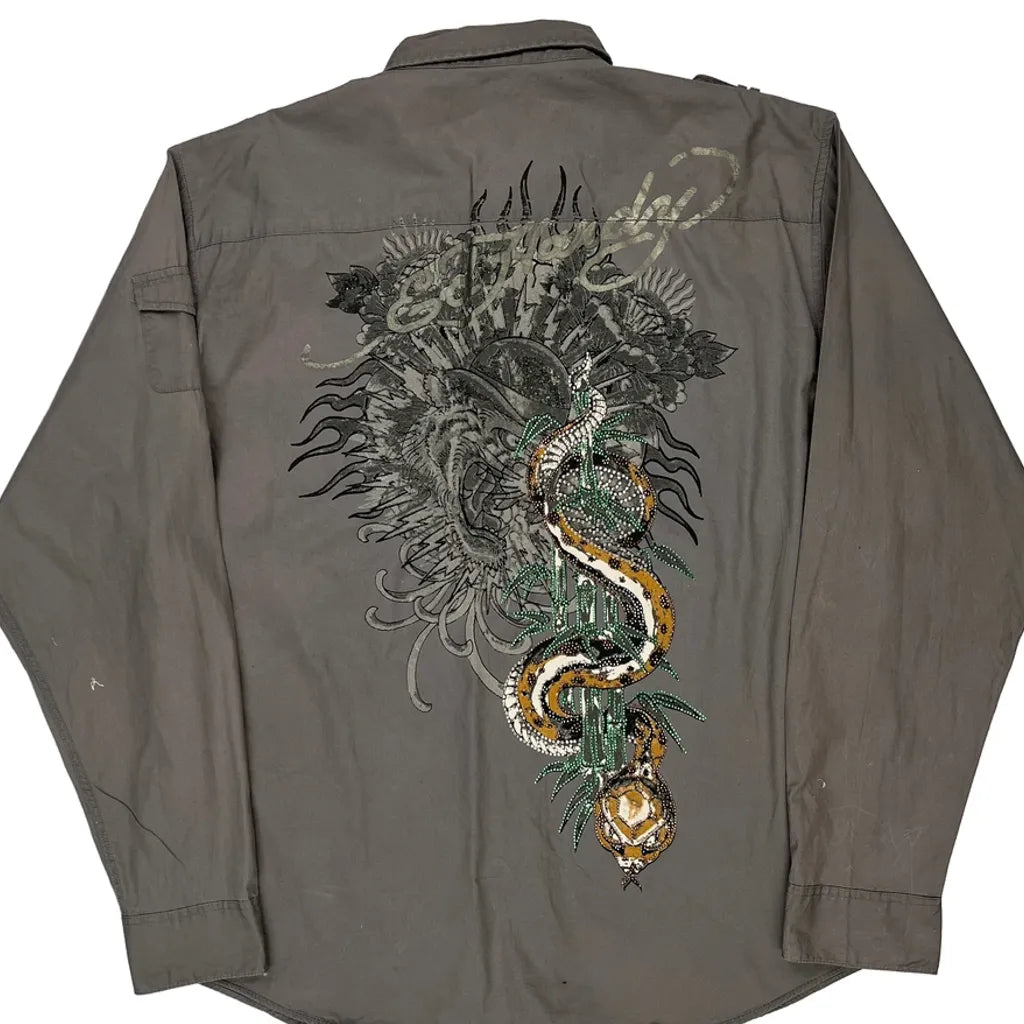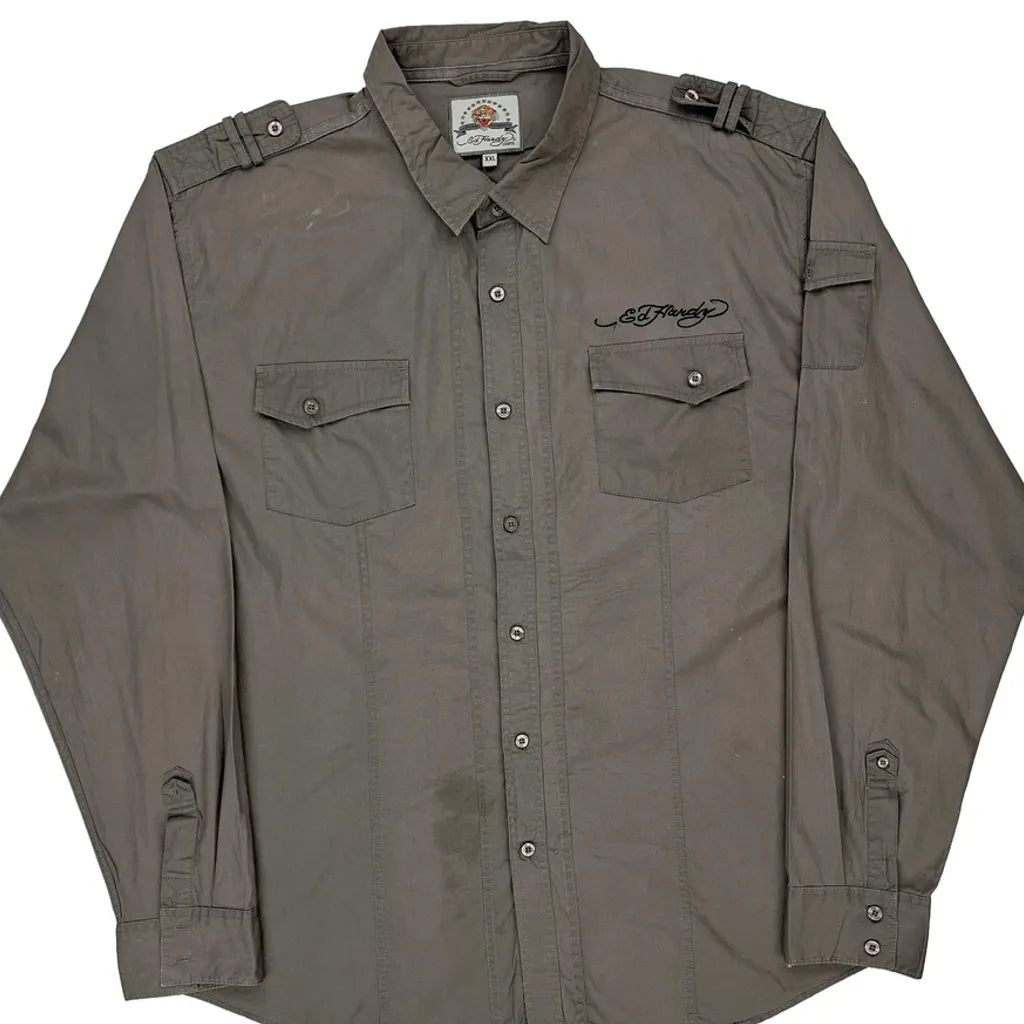 Ed Hardy Graphic Shirt - 2XL Grey Cotton