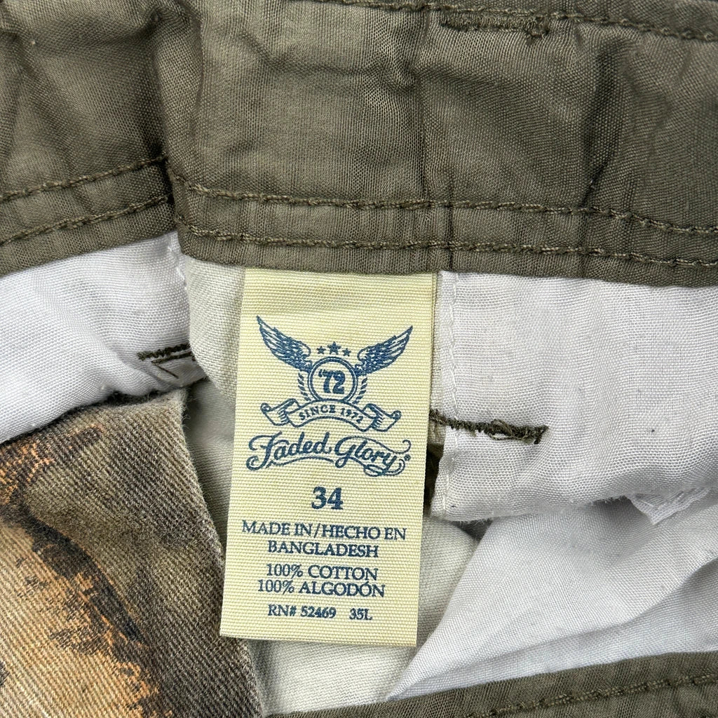 Faded Glory Camo Cargo Shorts - 34W 10L Camo Cotton