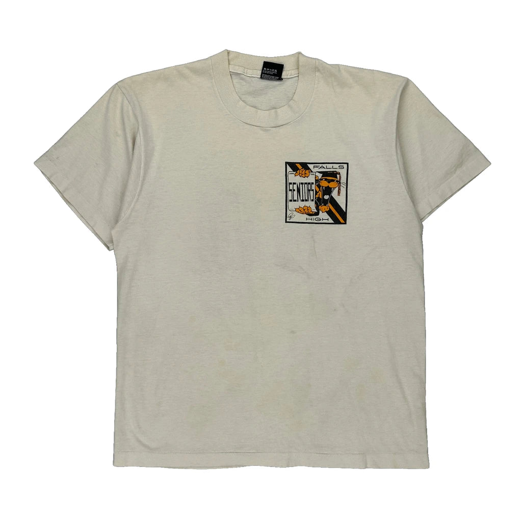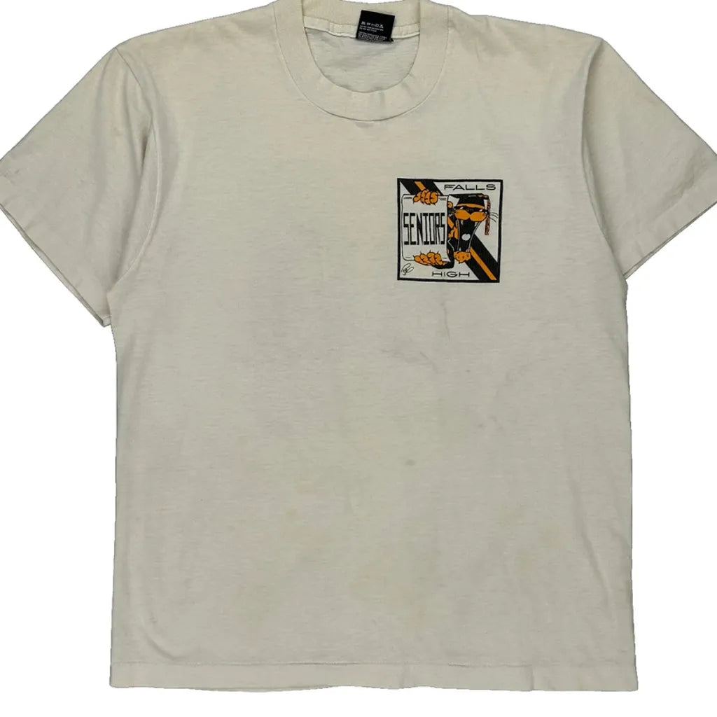 Falls High Seniors Screen Stars Graphic T-Shirt - Large Cream Cotton Blend