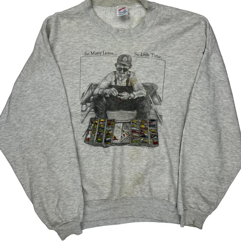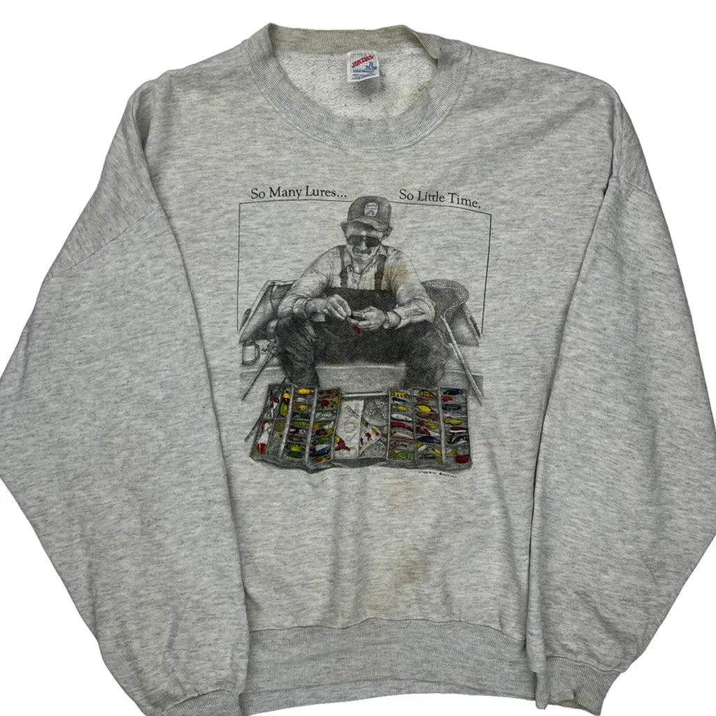 Fishing Jerzees Graphic Sweatshirt - 2XL Grey Cotton Blend