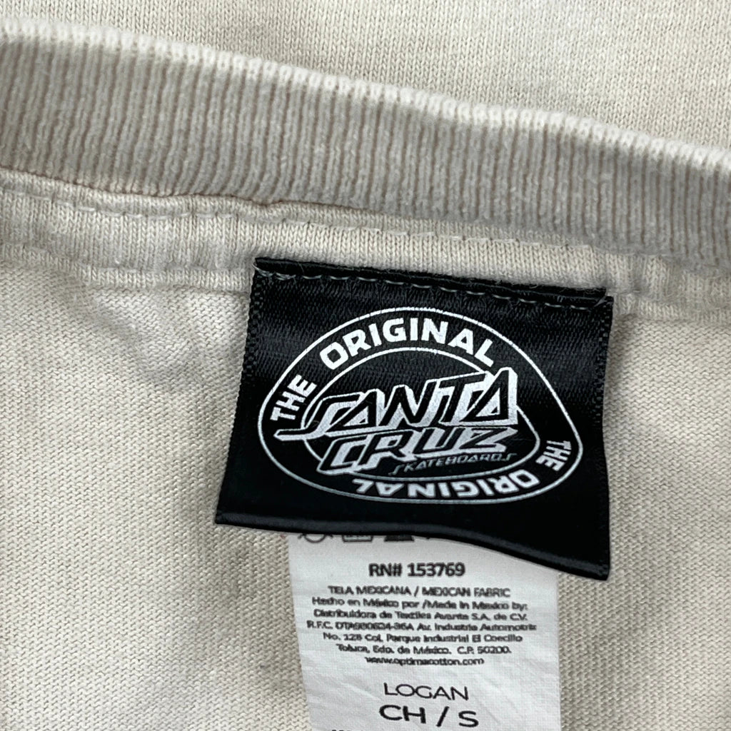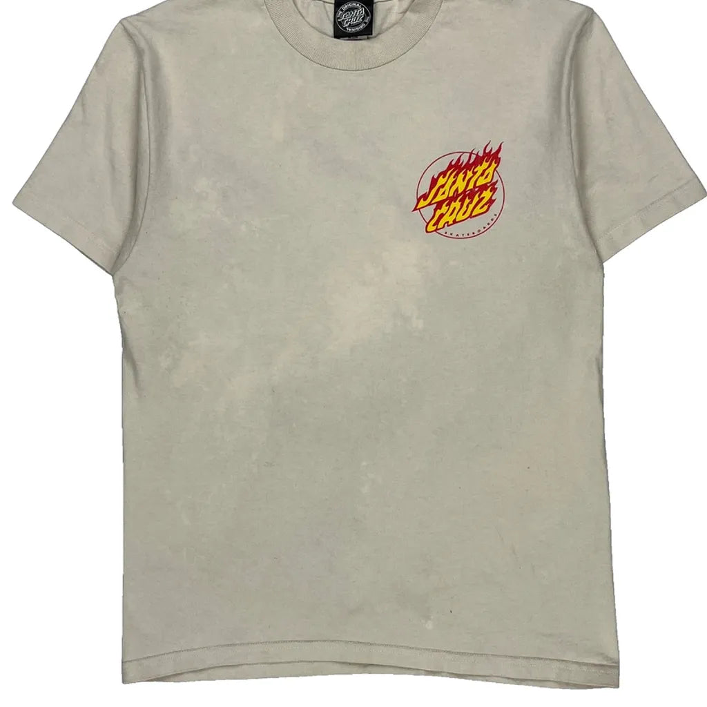 Flame Logo Santa Cruz Graphic T-Shirt - Small Beige Cotton