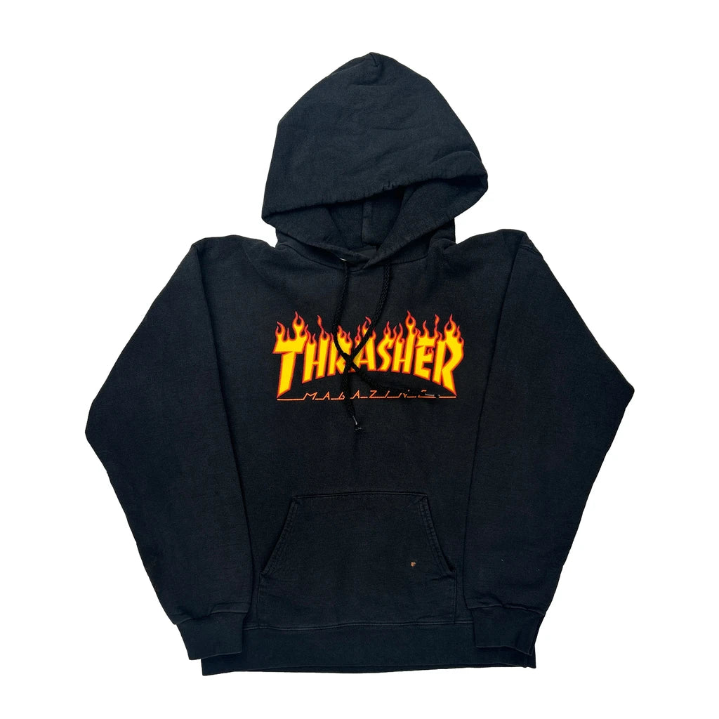 Flame Logo Thrasher Graphic Hoodie - Medium Black Cotton Blend