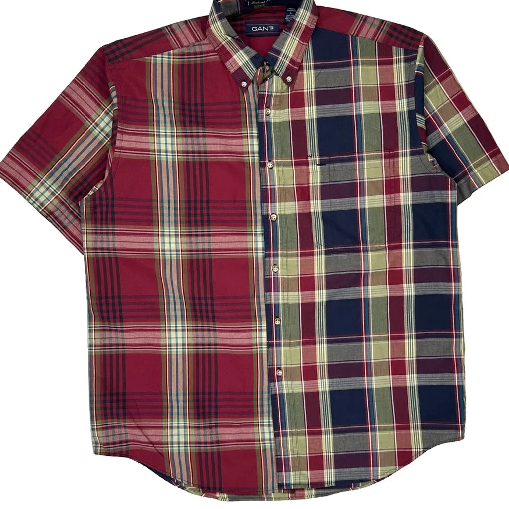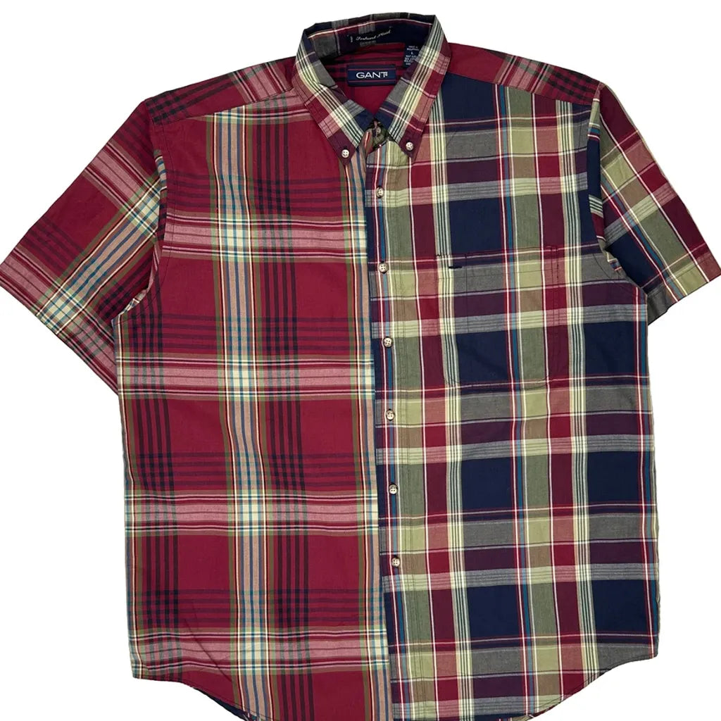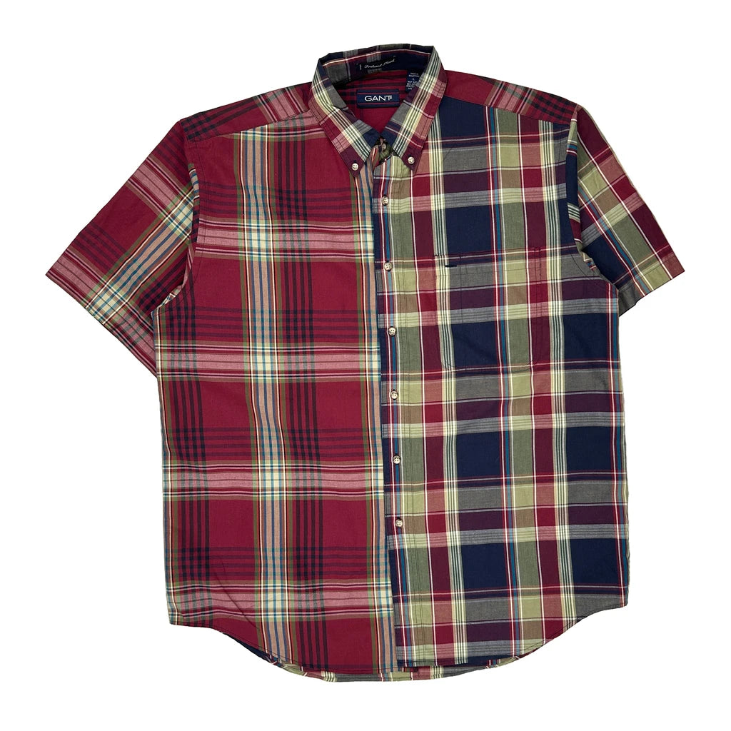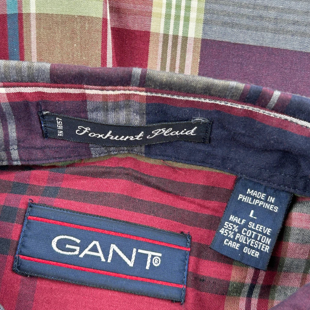 Foxhunt Plaid Gant Checked Short Sleeve Shirt - Large Multicoloured Cotton Blend