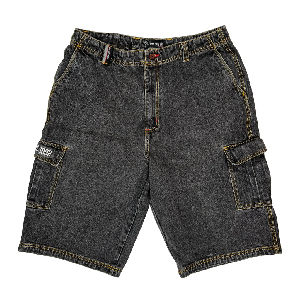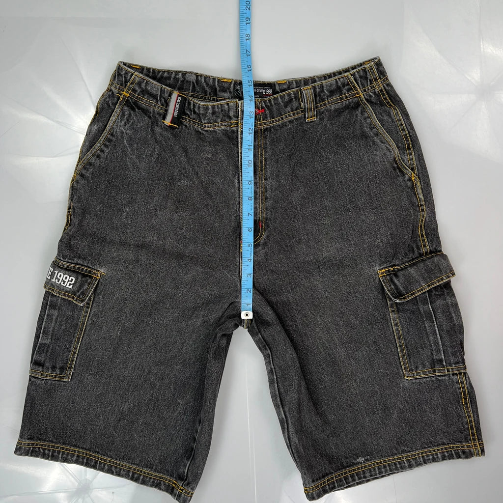 Fubu Cargo Denim Shorts - 34W 12L Grey Cotton