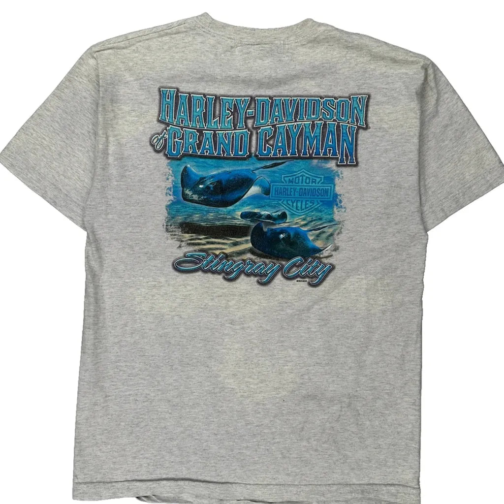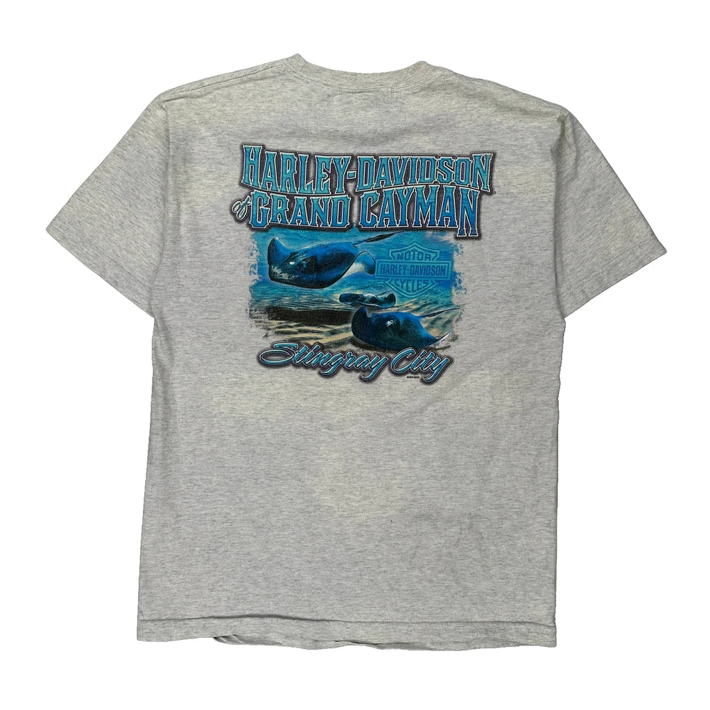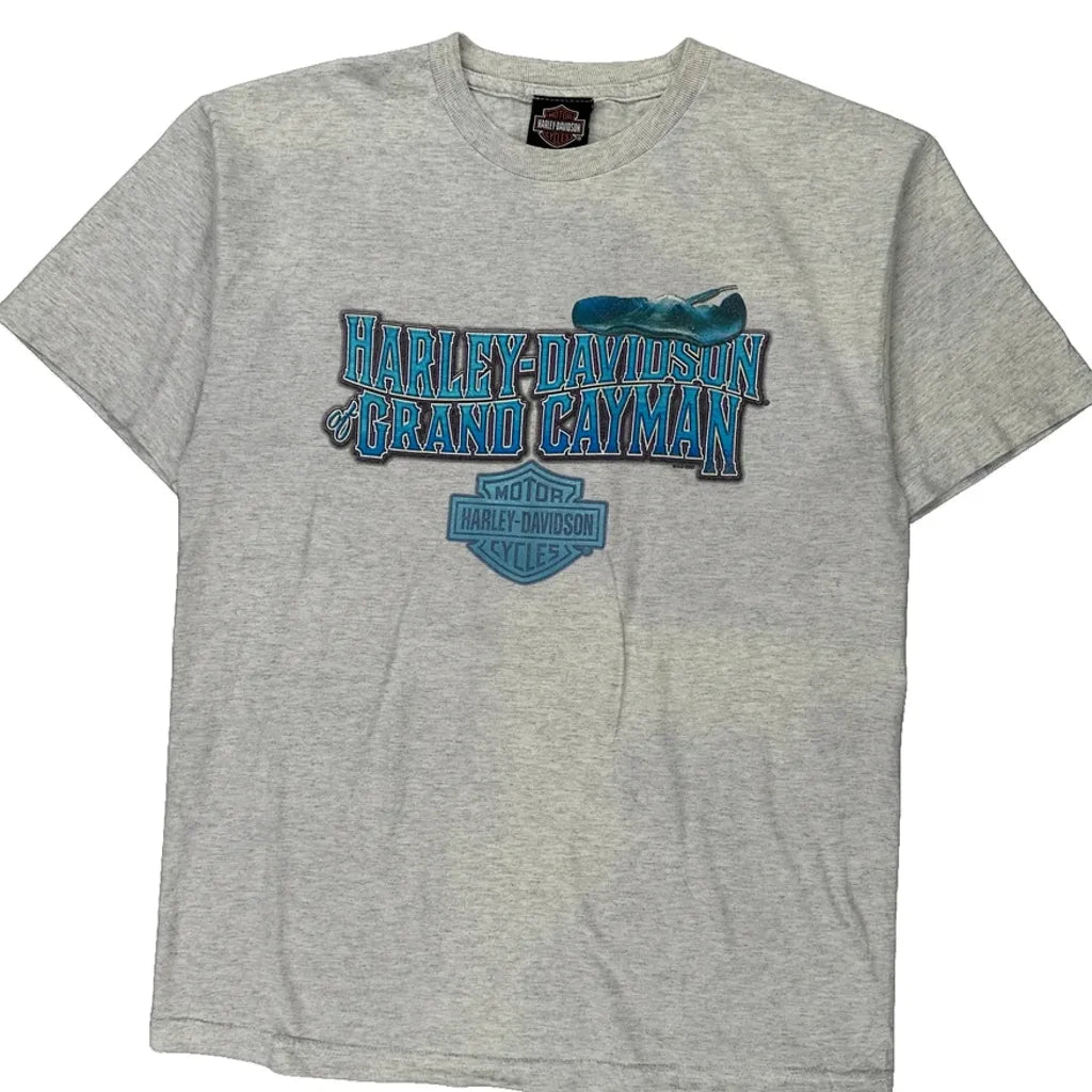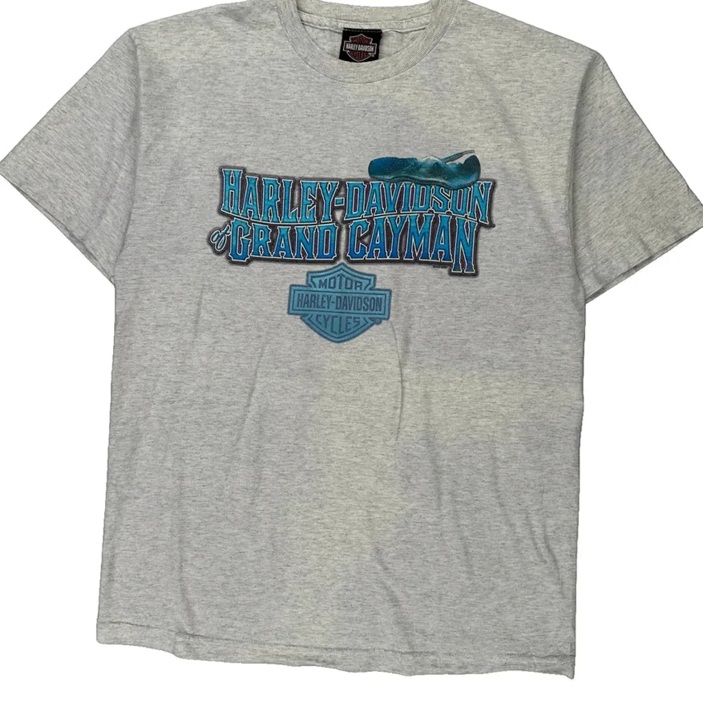 Grand Cayman Harley Davidson Graphic T-Shirt - Medium Grey Cotton