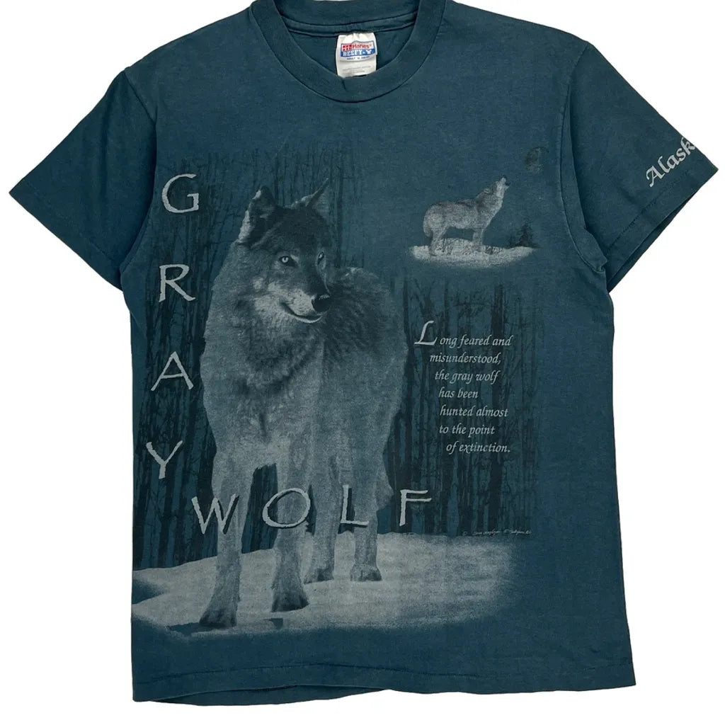 Gray Wolf Hanes Single Stitch T-Shirt - Medium Blue Cotton