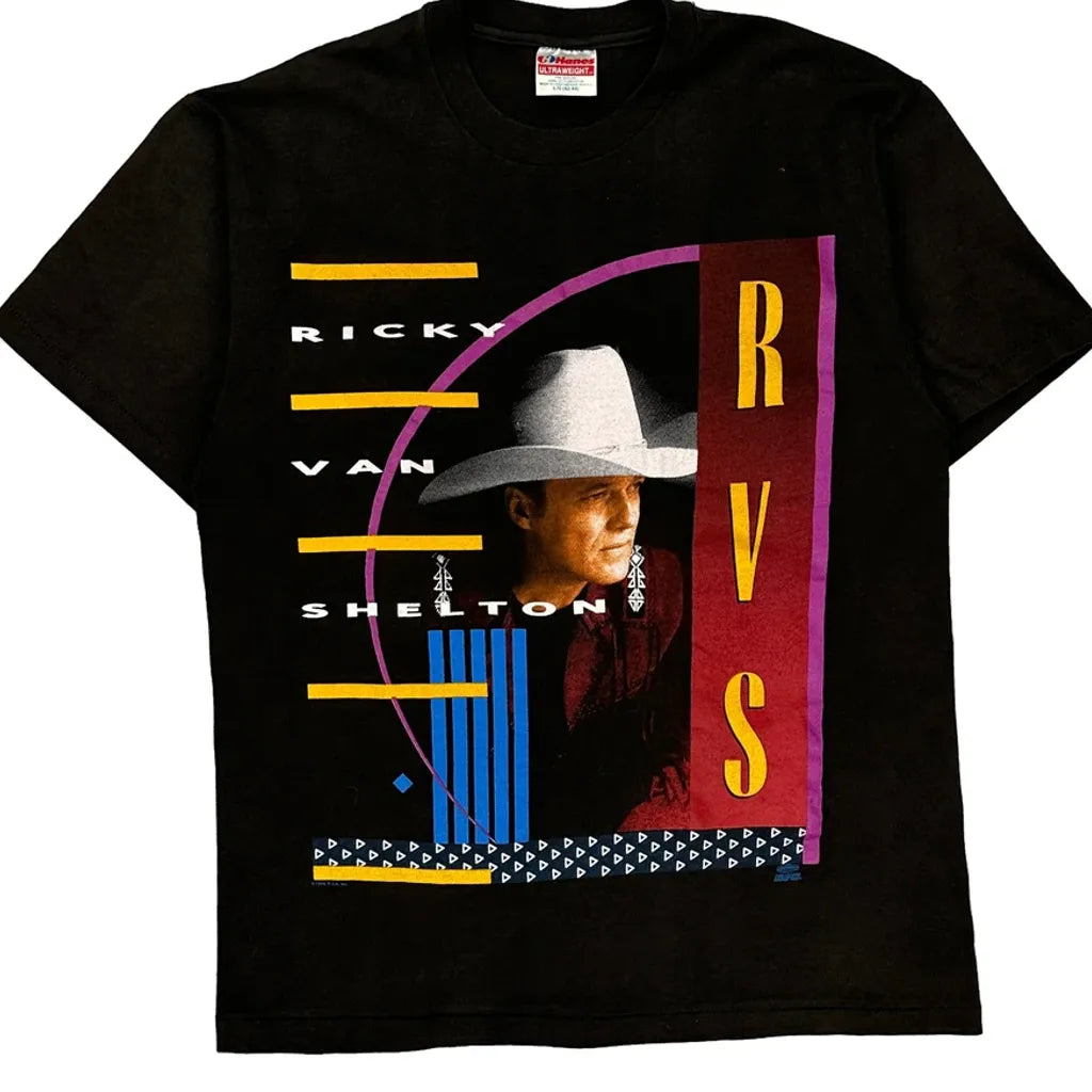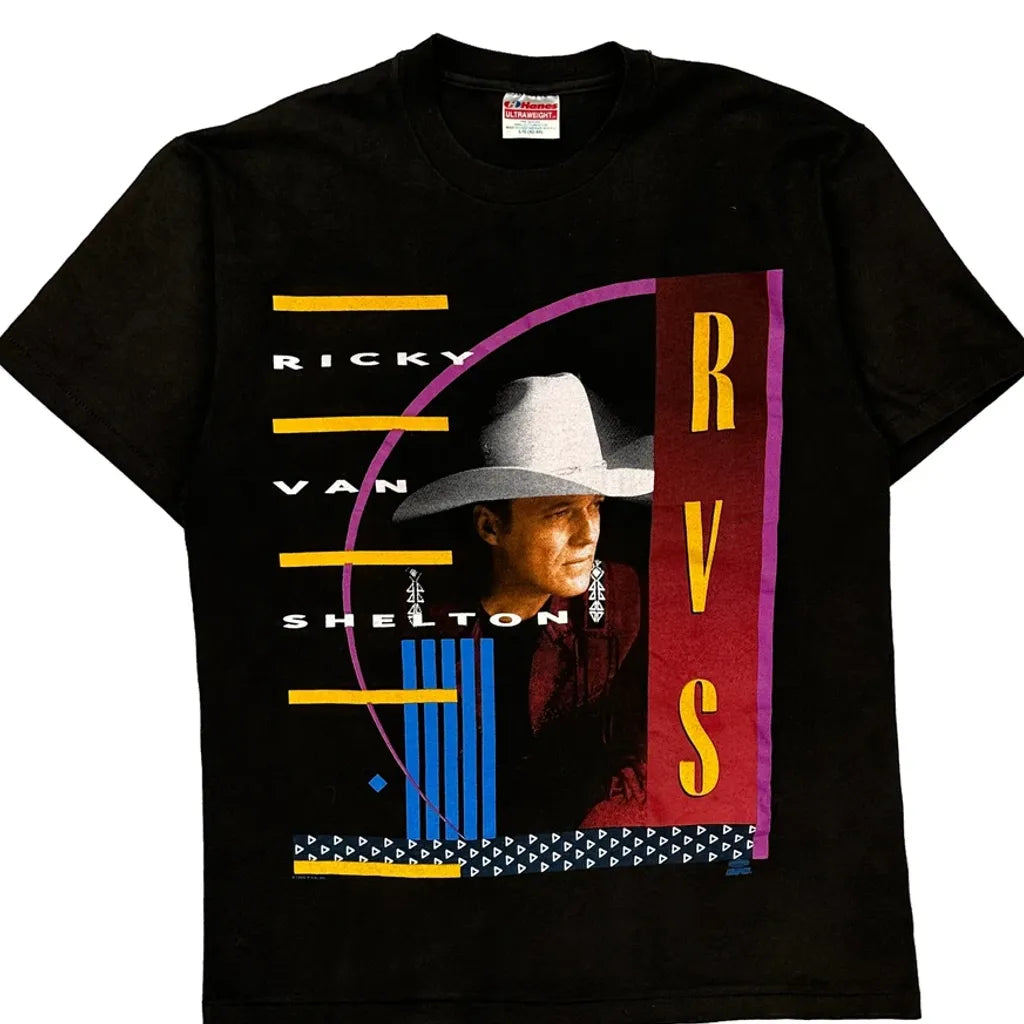 Ricky Van Shelton Hanes Single Stitch T-Shirt - Large Black Cotton