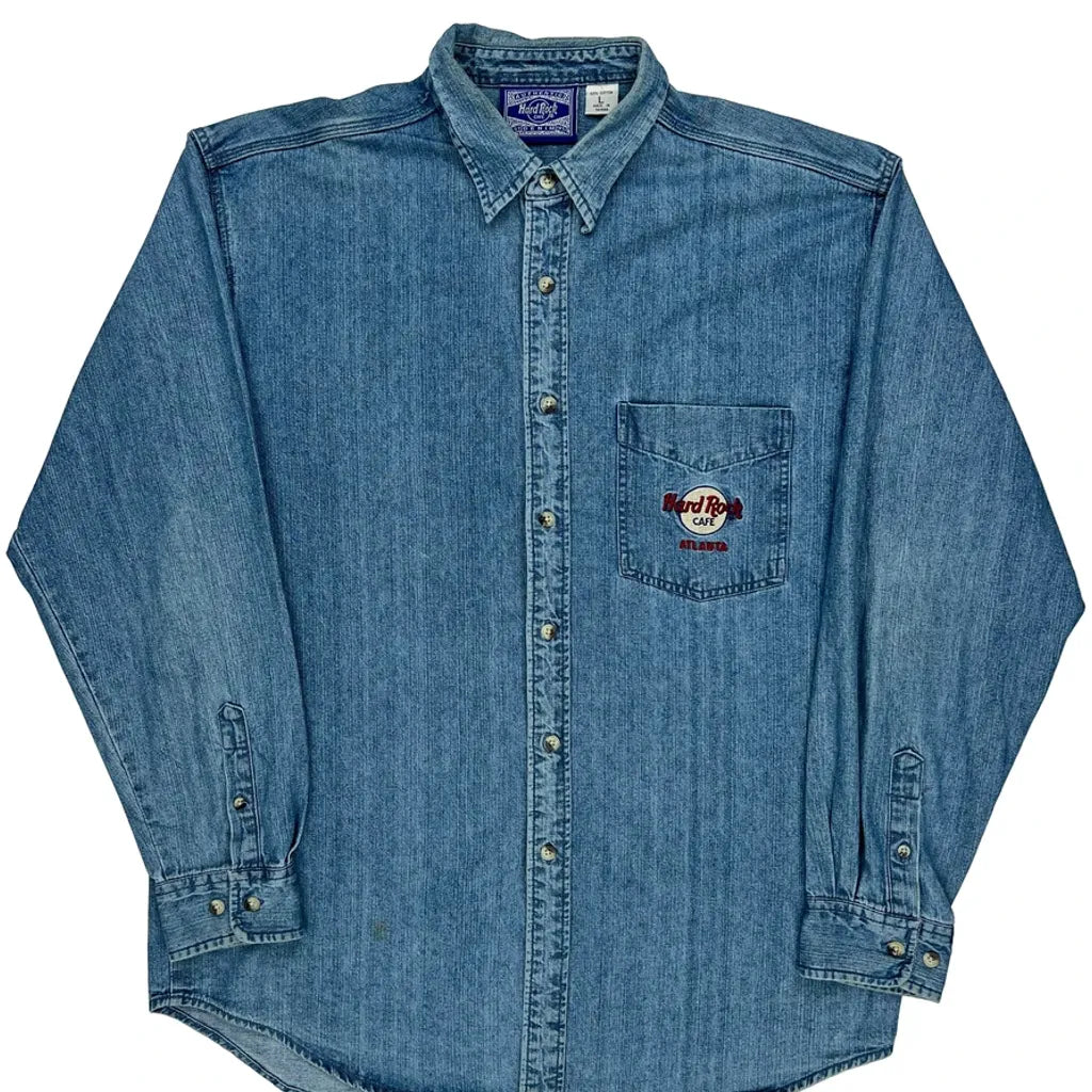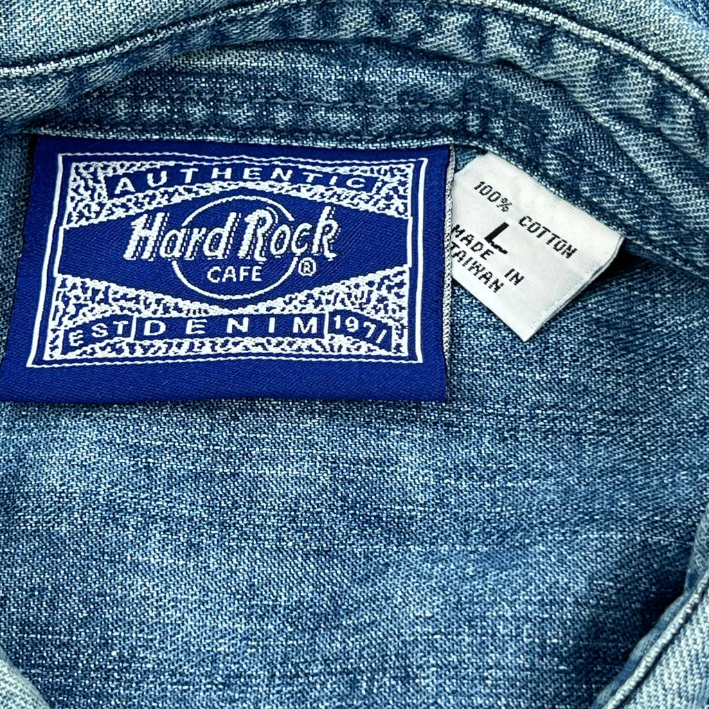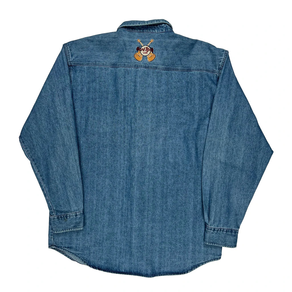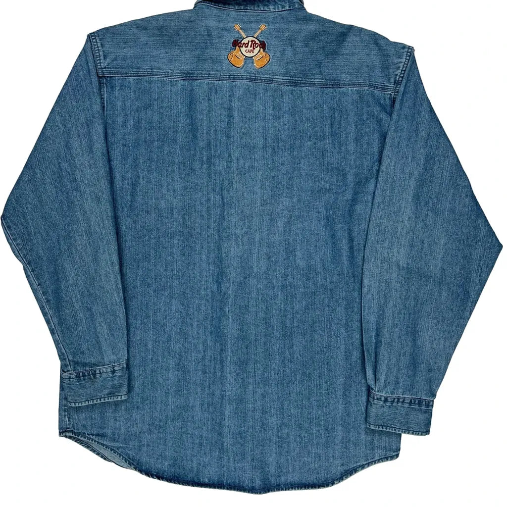 Hard Rock Cafe Graphic Denim Shirt - Large Blue Cotton