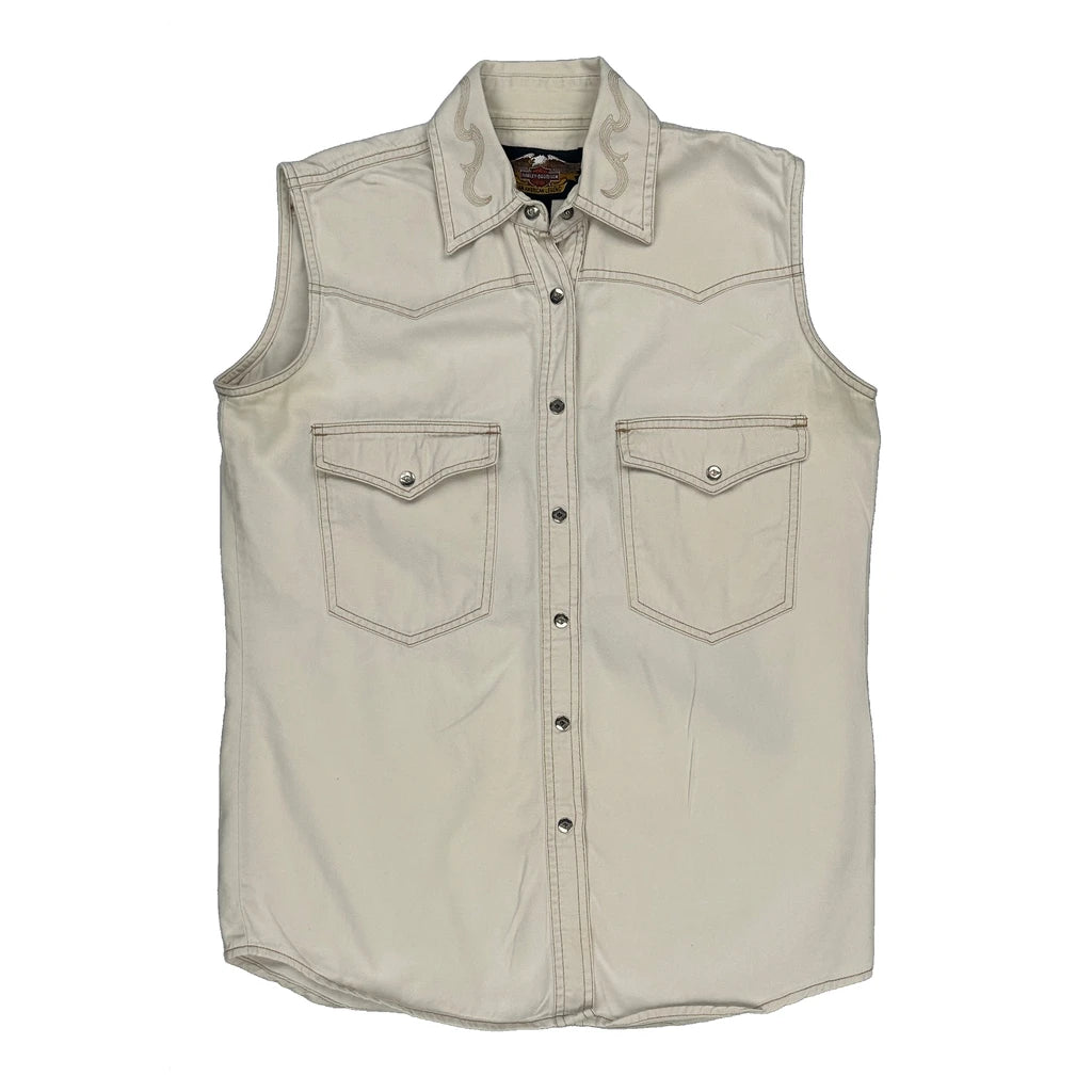 Harley Davidson Denim Shirt - Small Cream Cotton