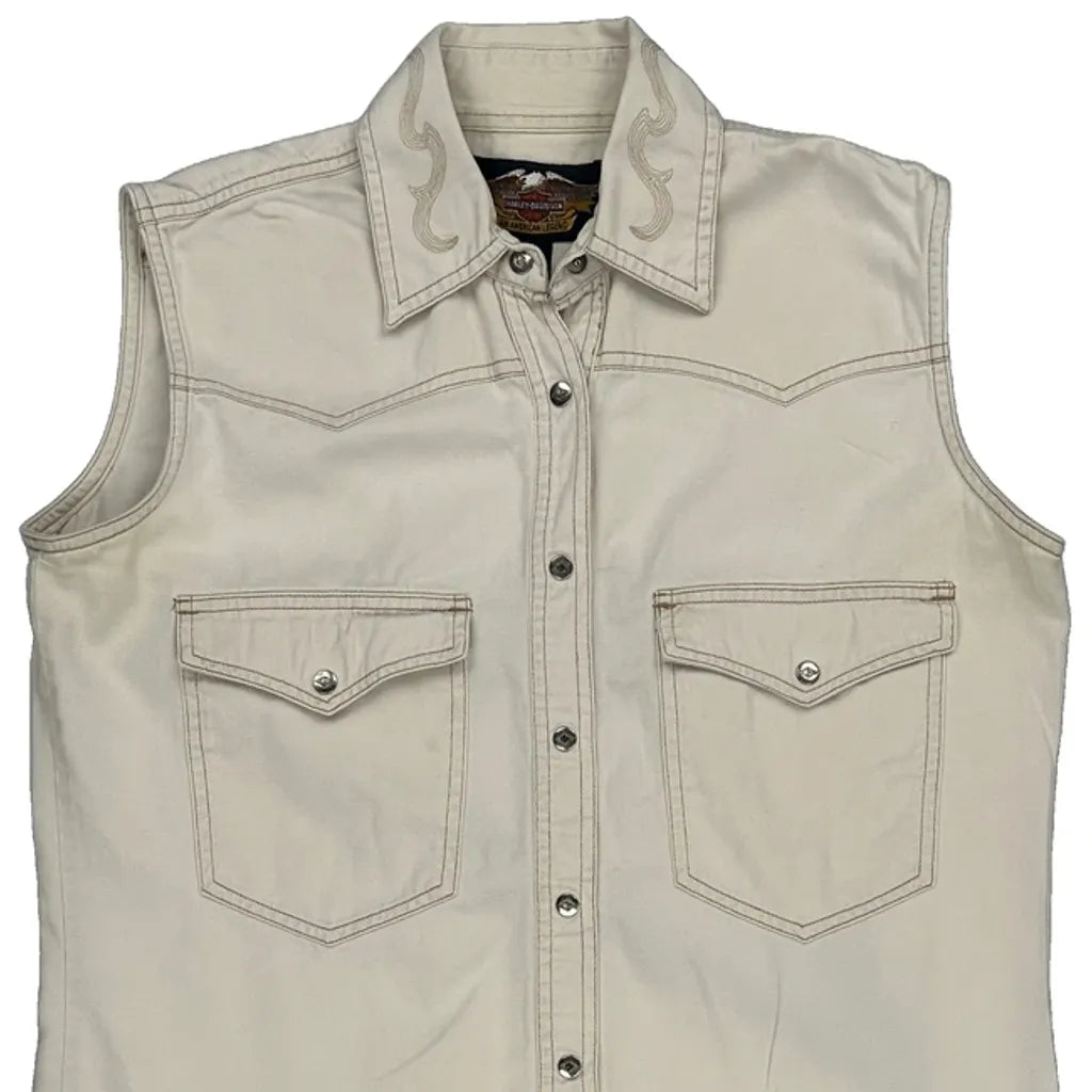 Harley Davidson Ladies' Cream Vest With Embroidered Details