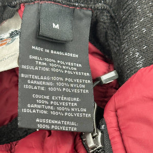 Black And Red Jacket With Quilted Design, Zipper Closure, And Small Logo On Front.