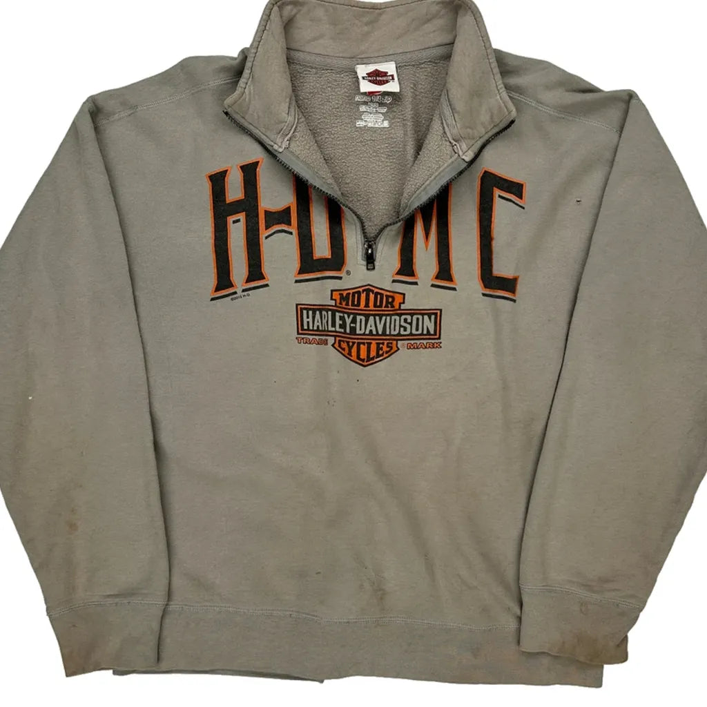 Harley Davidson Graphic Long Sleeve T-Shirt - Large Grey Cotton Blend