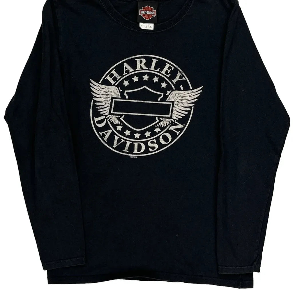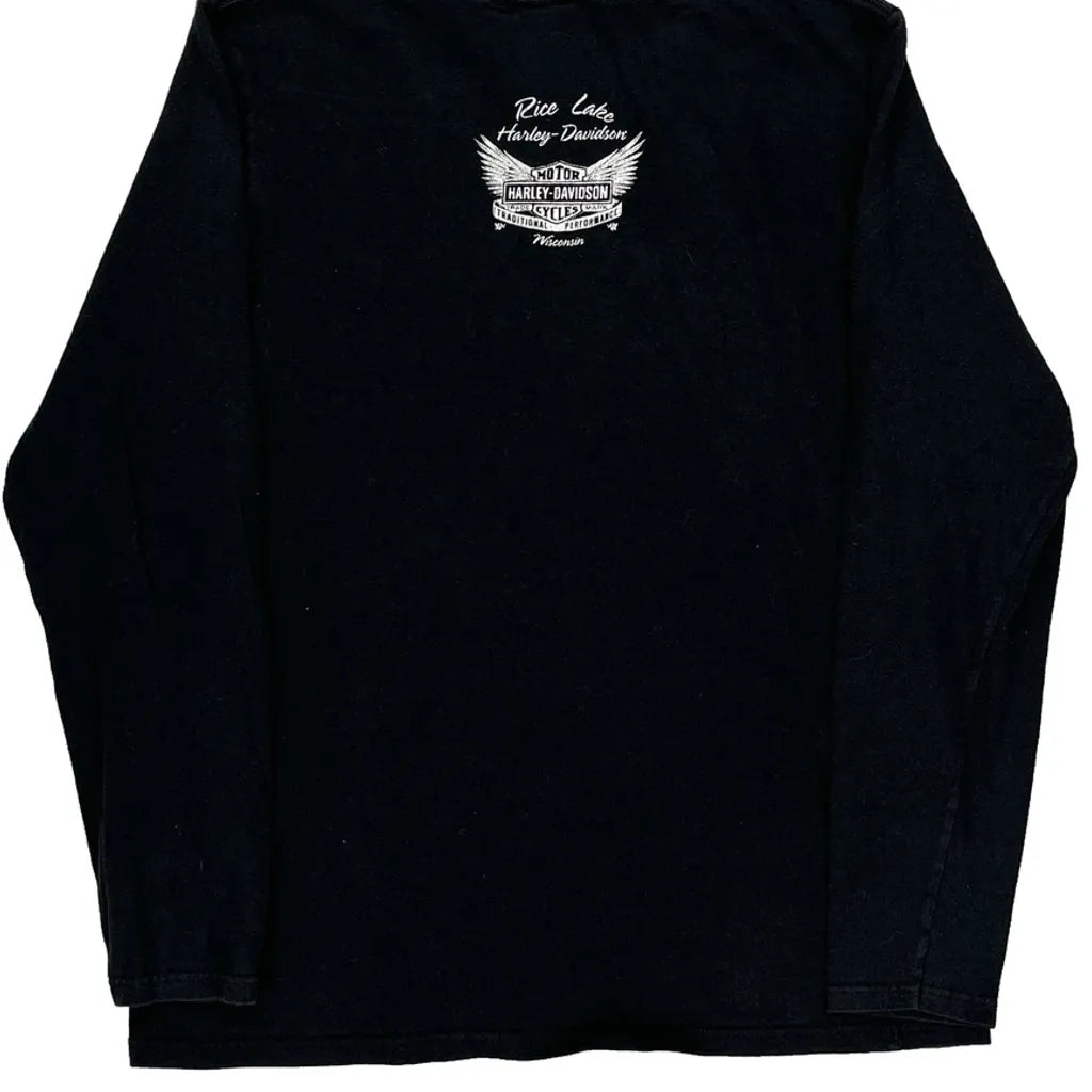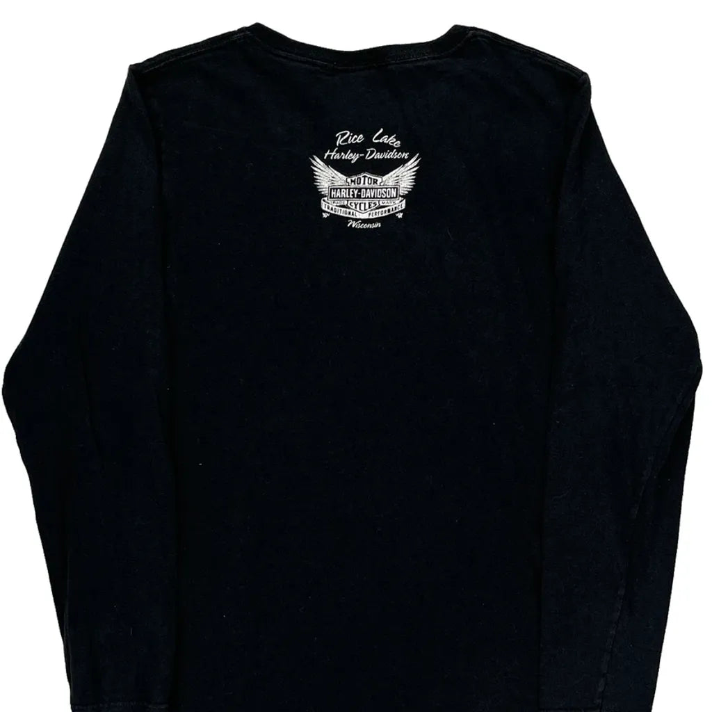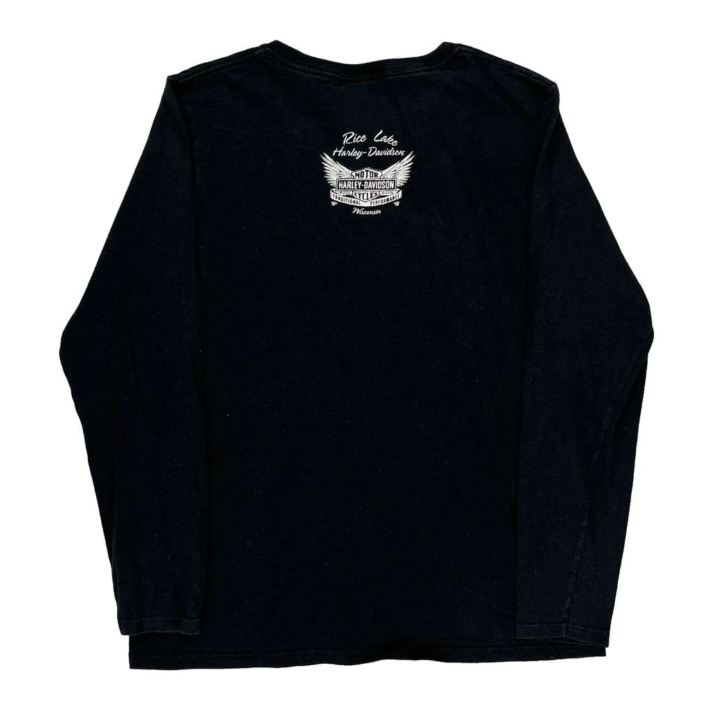 Harley Davidson Graphic Long Sleeve T-Shirt - Medium Black Cotton