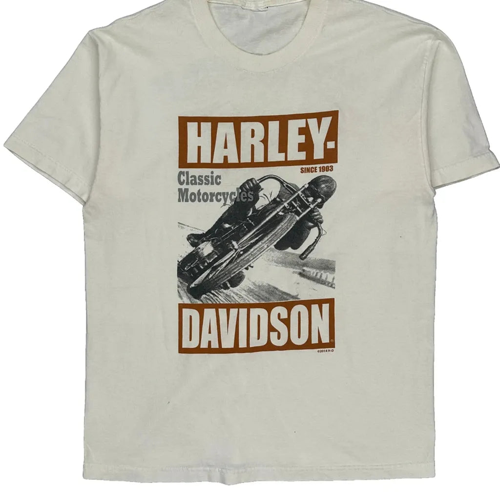 Harley Davidson Graphic T-Shirt - Medium Brown Cotton