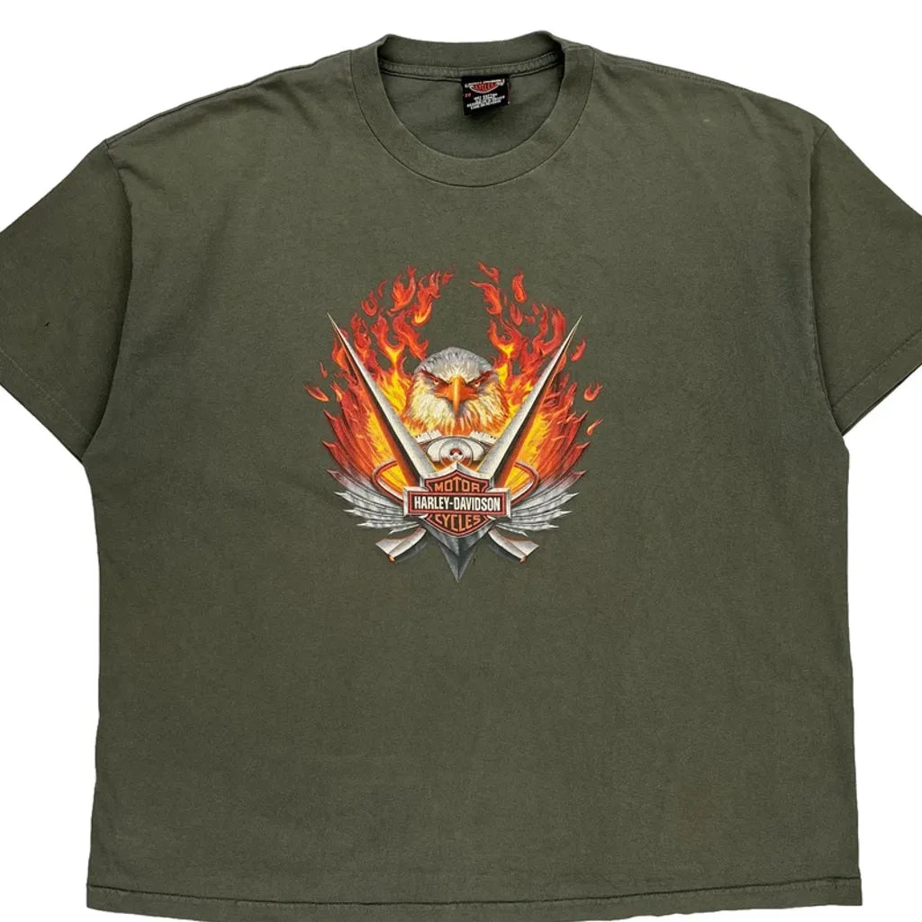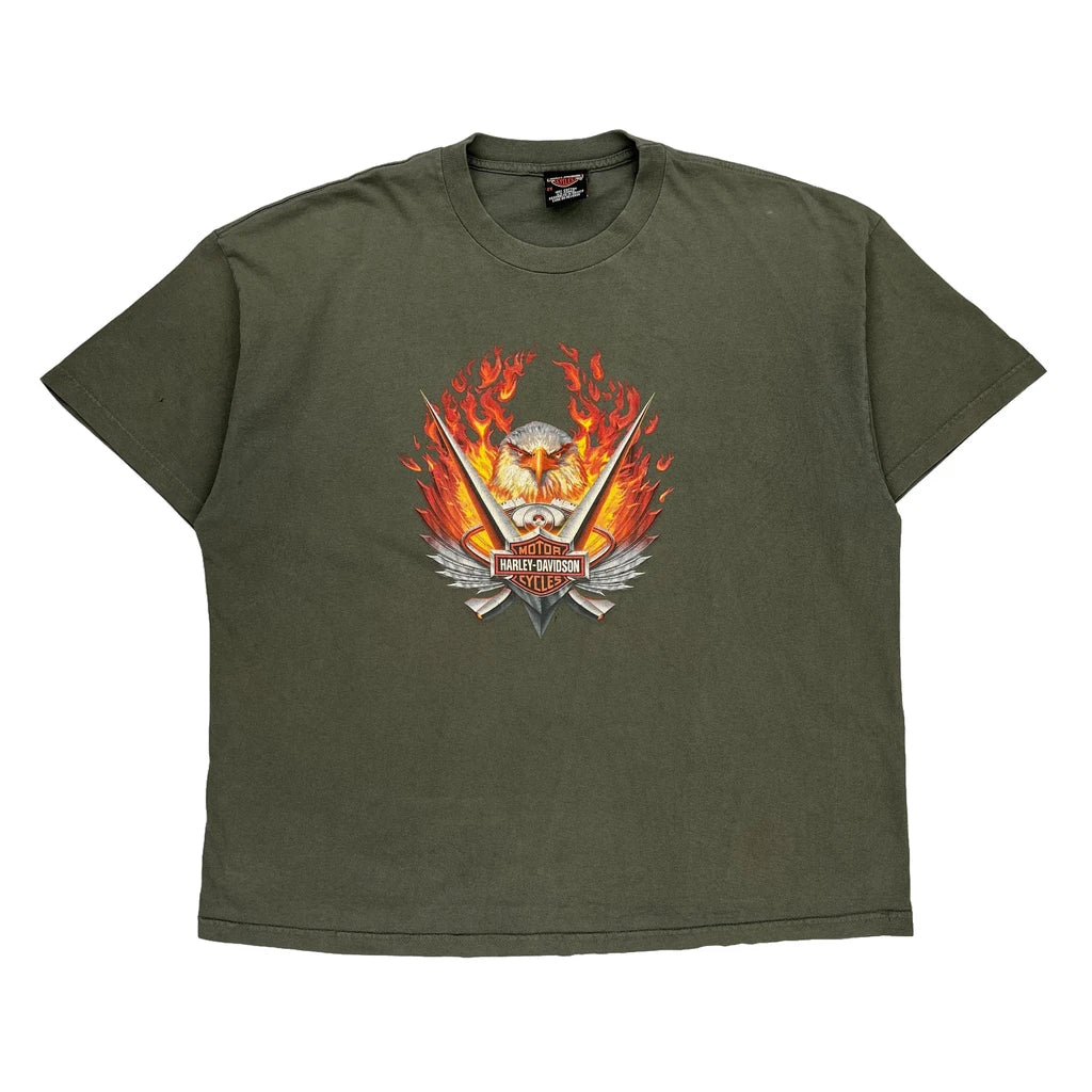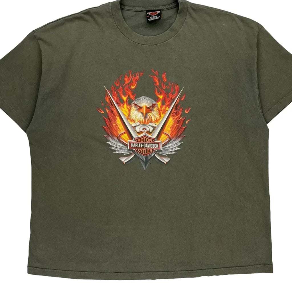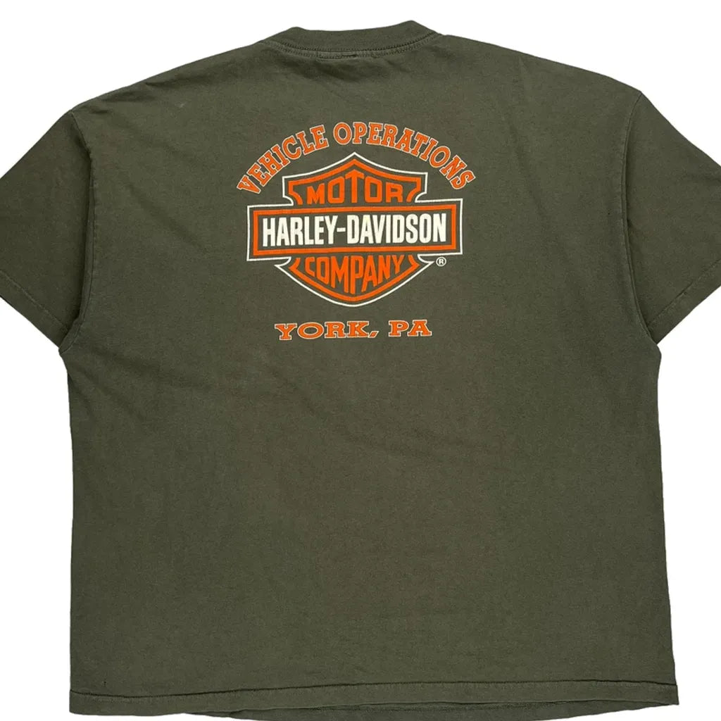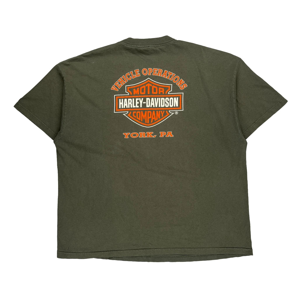 Harley Davidson Graphic T-Shirt - 2XL Green Cotton