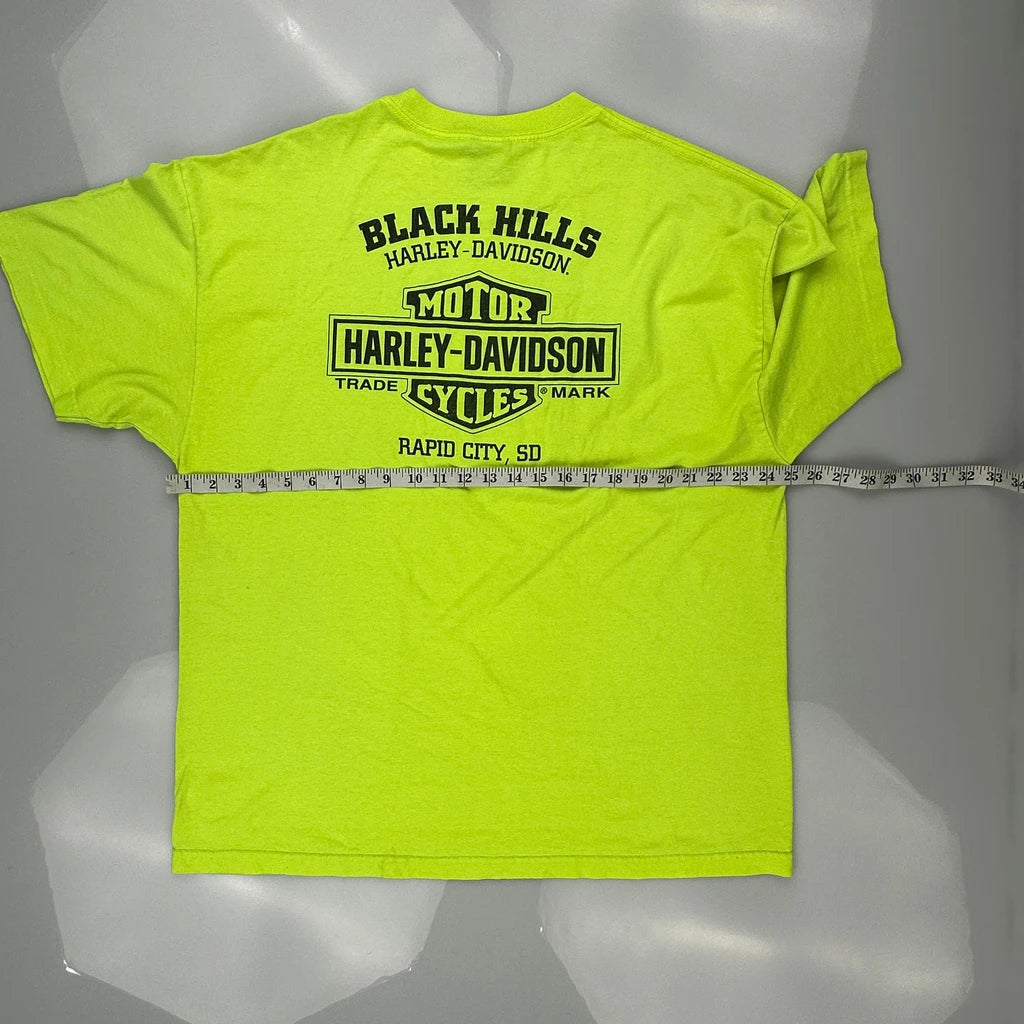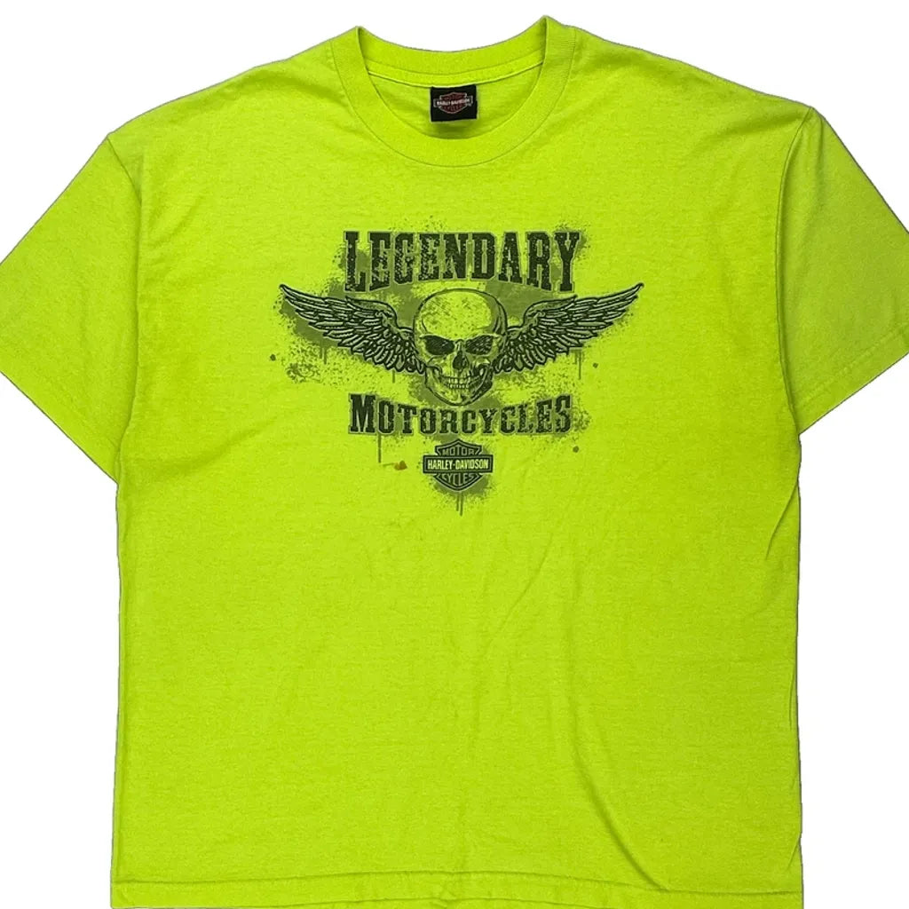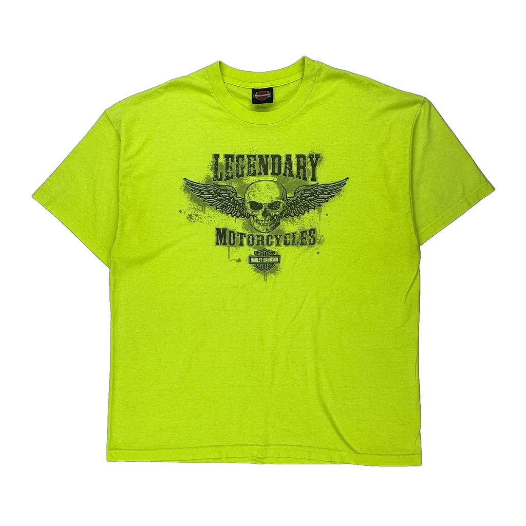 Harley Davidson Graphic T-Shirt - 2XL Yellow Cotton