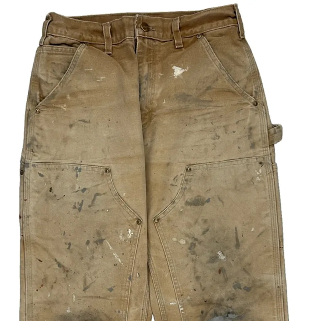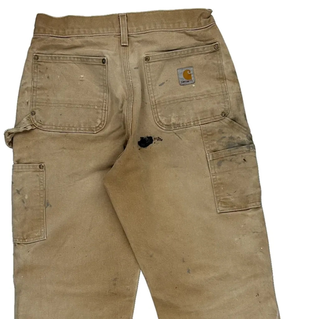 Heavily Worn Carhartt Double Knee Carpenter Trousers - 28W 28L Brown Cotton