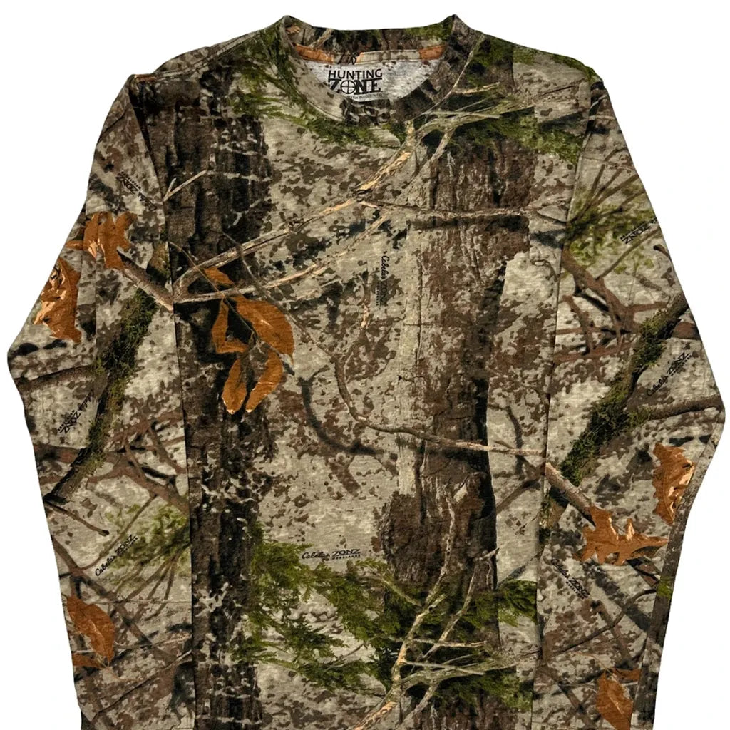 Hunting Zone Camo Long Sleeve T-Shirt - Medium Khaki Cotton
