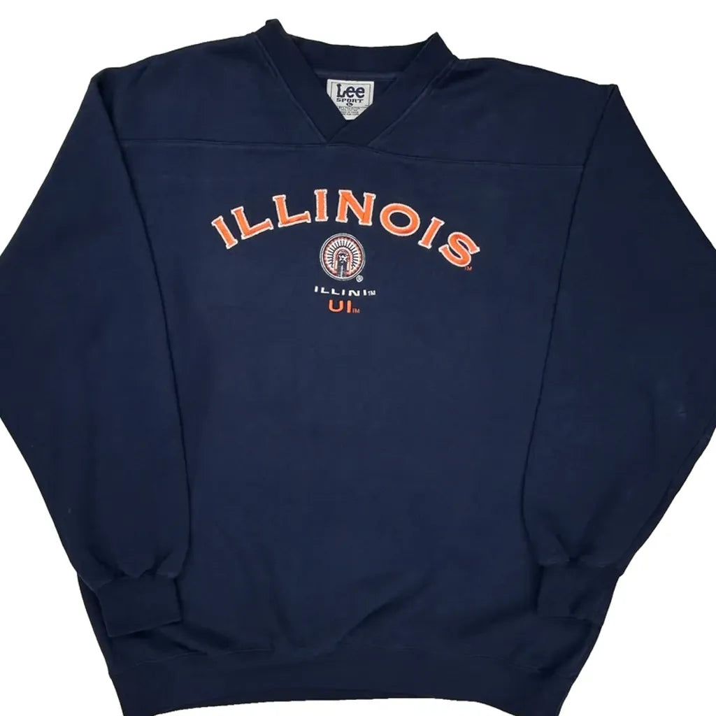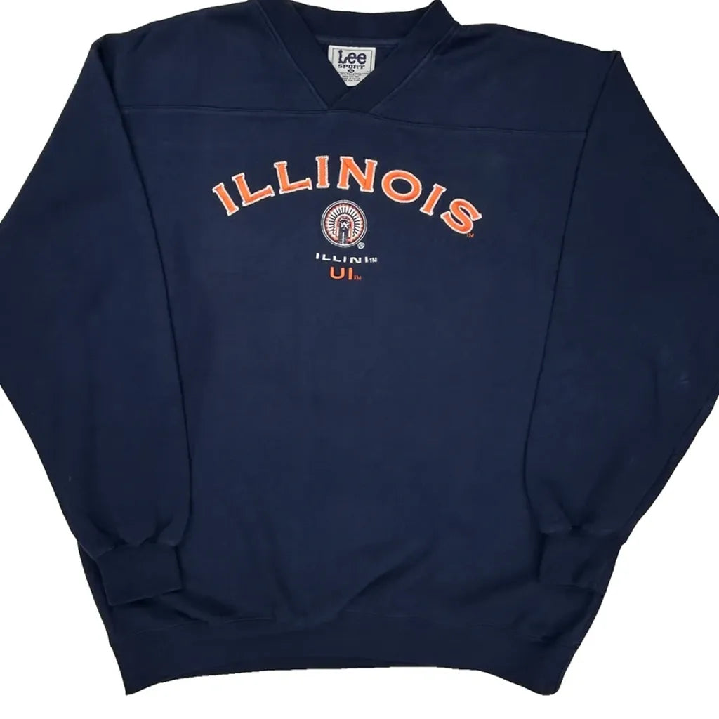 Illinois Lee Sport College Sweatshirt - Large Navy Polyester Blend