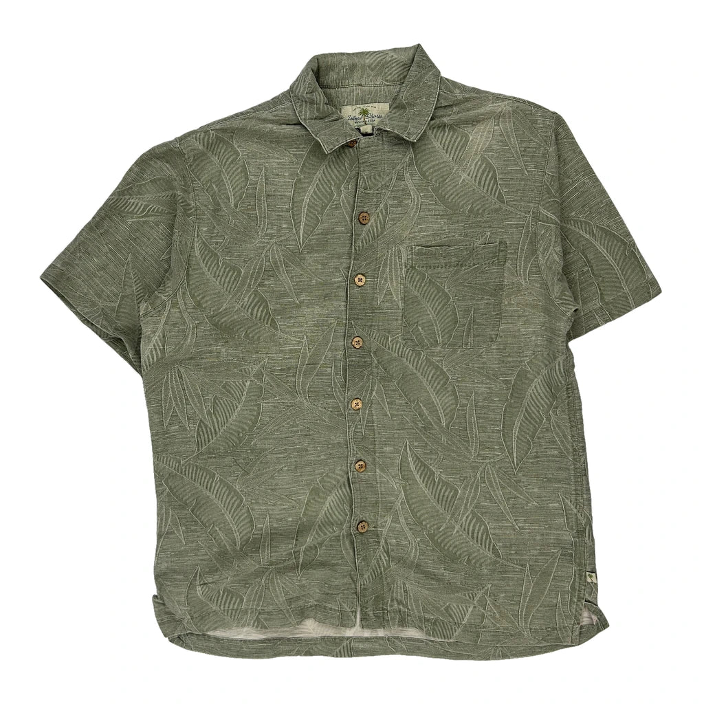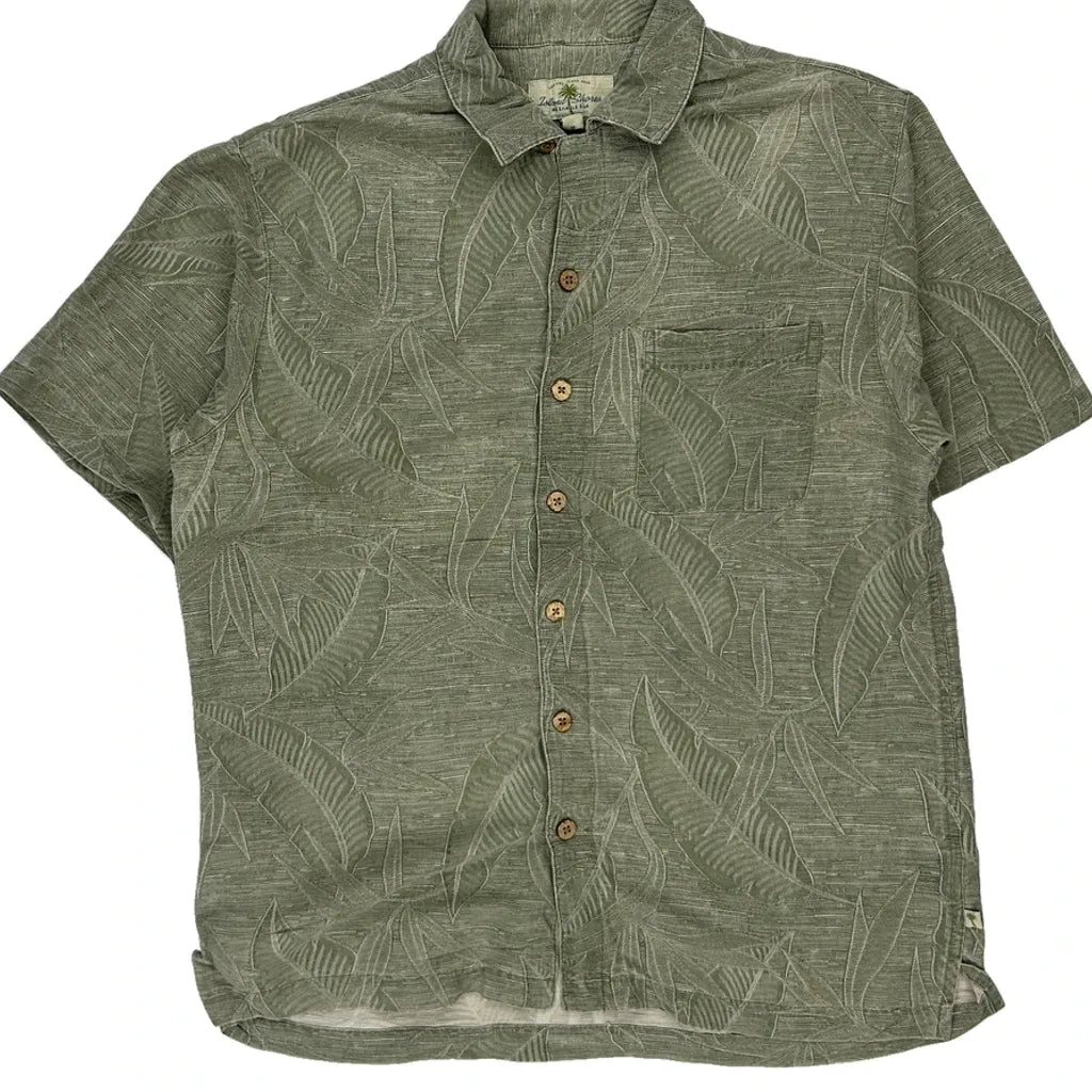 Island Shore Hawaiian Shirt - Medium Green Silk