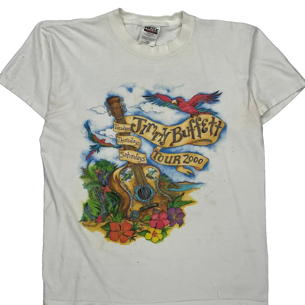 Jimmy Buffett 2000 Tour Tultex Band T-Shirt - Large White Cotton