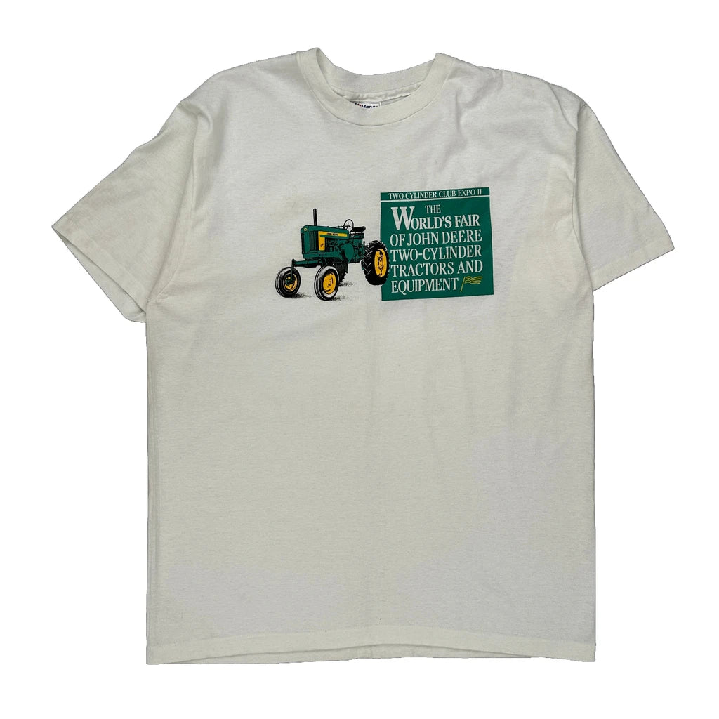 John Deere Hanes Single Stitch T-Shirt - XL White Cotton Blend
