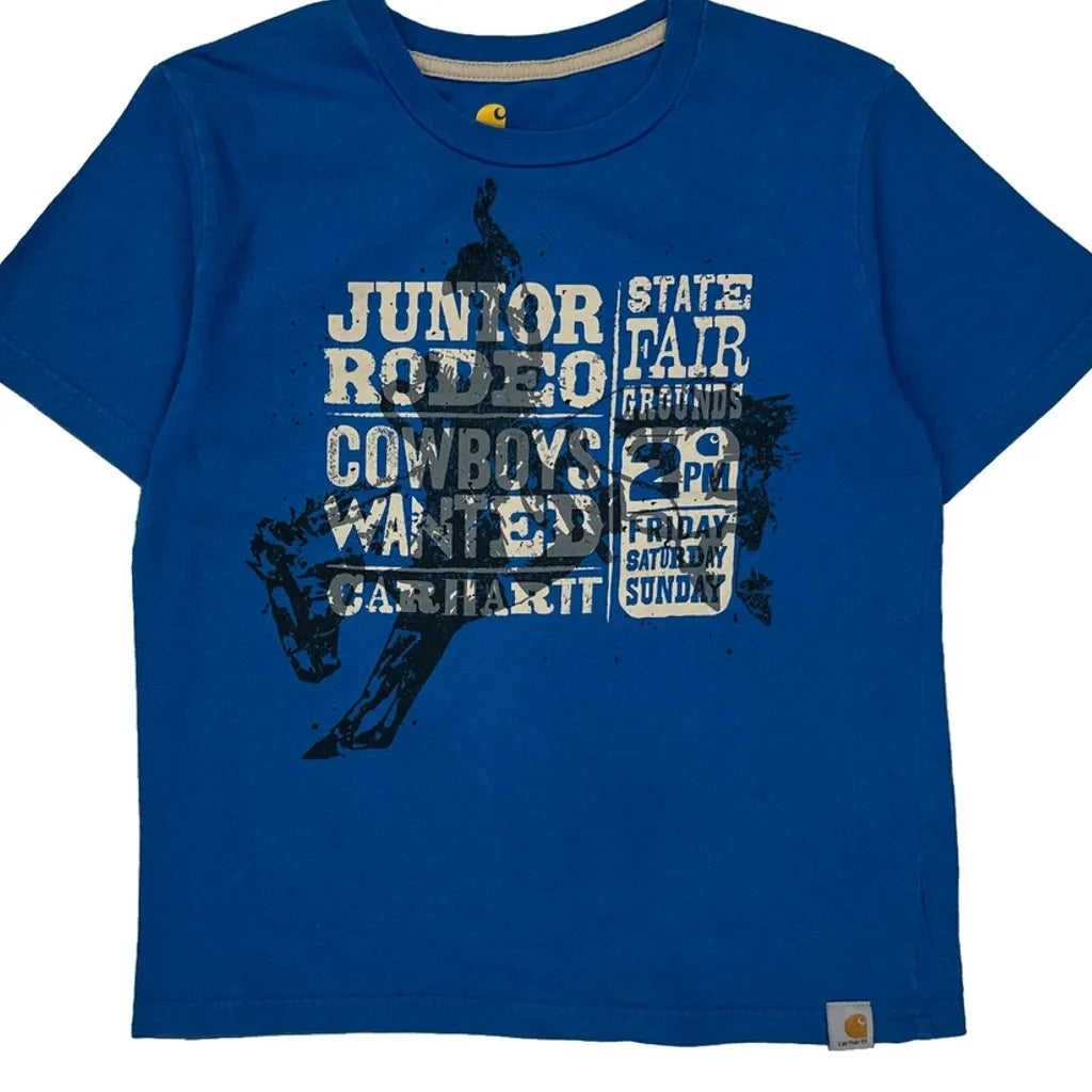 Junior Rodeo Carhartt Graphic T-Shirt - Small Blue Cotton