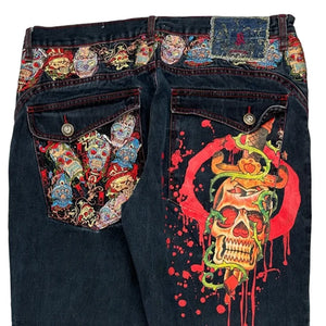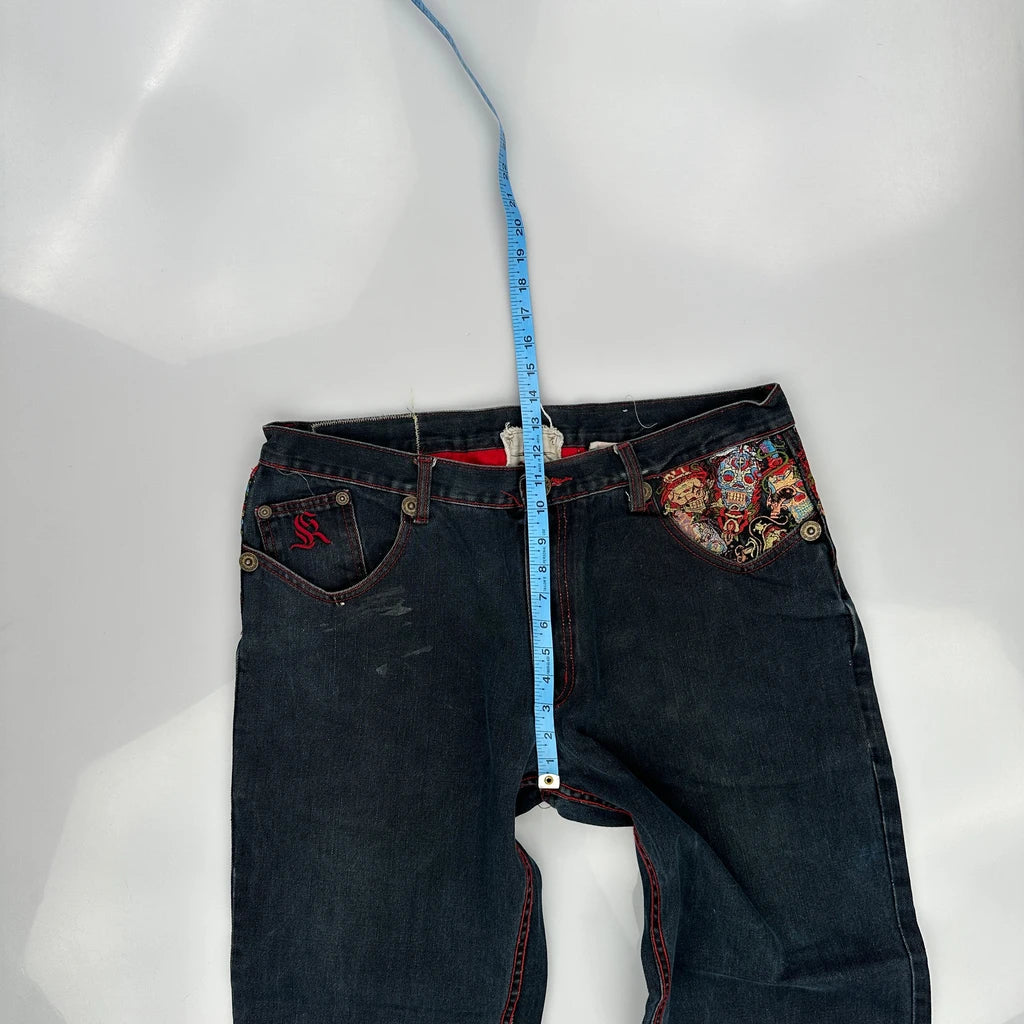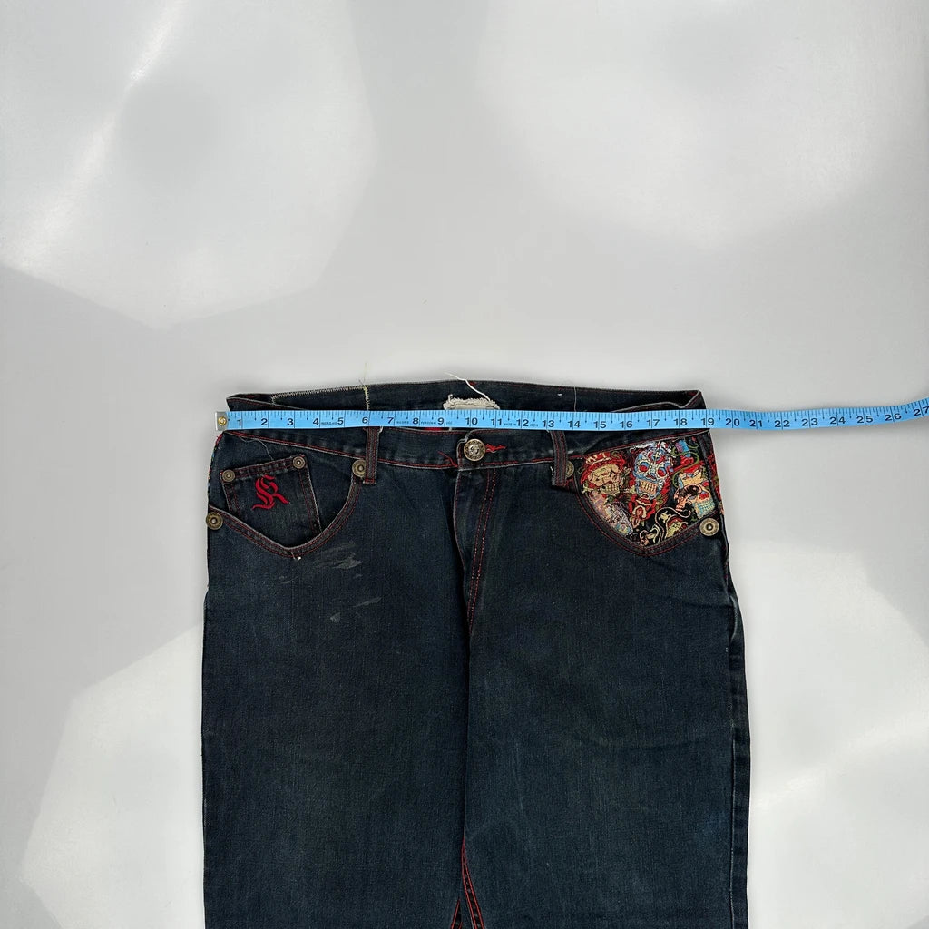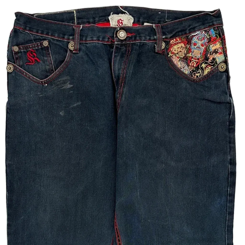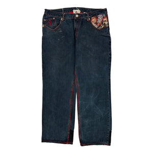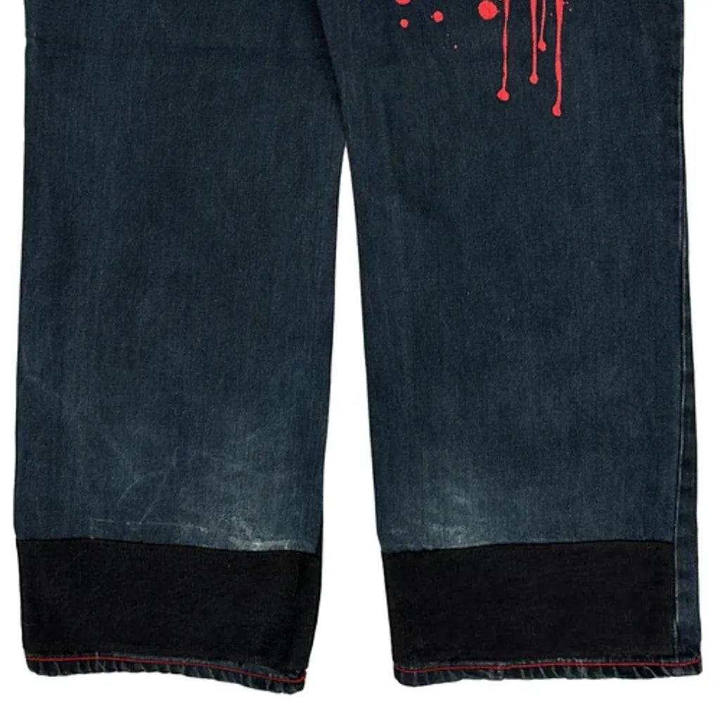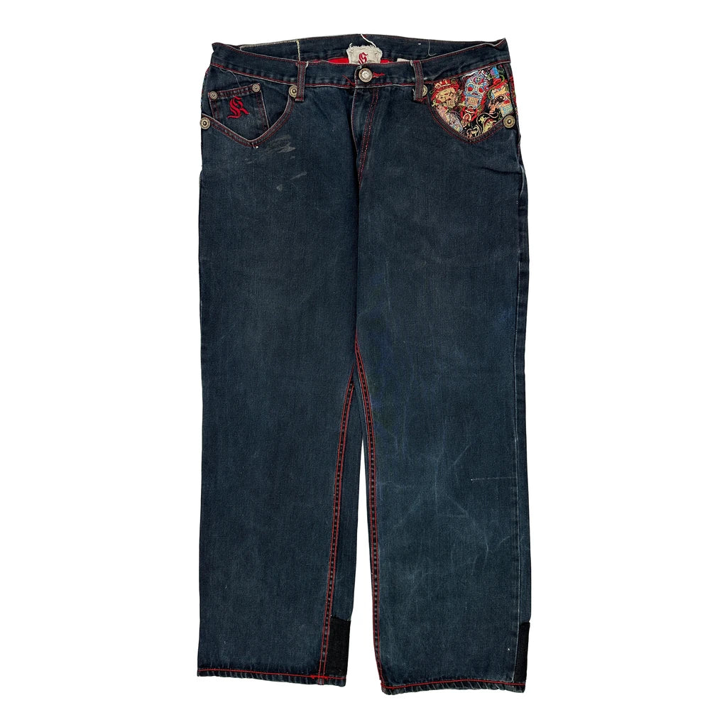 Kanji Baggy Graphic Jeans - 38W 32L Dark Wash Denim