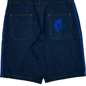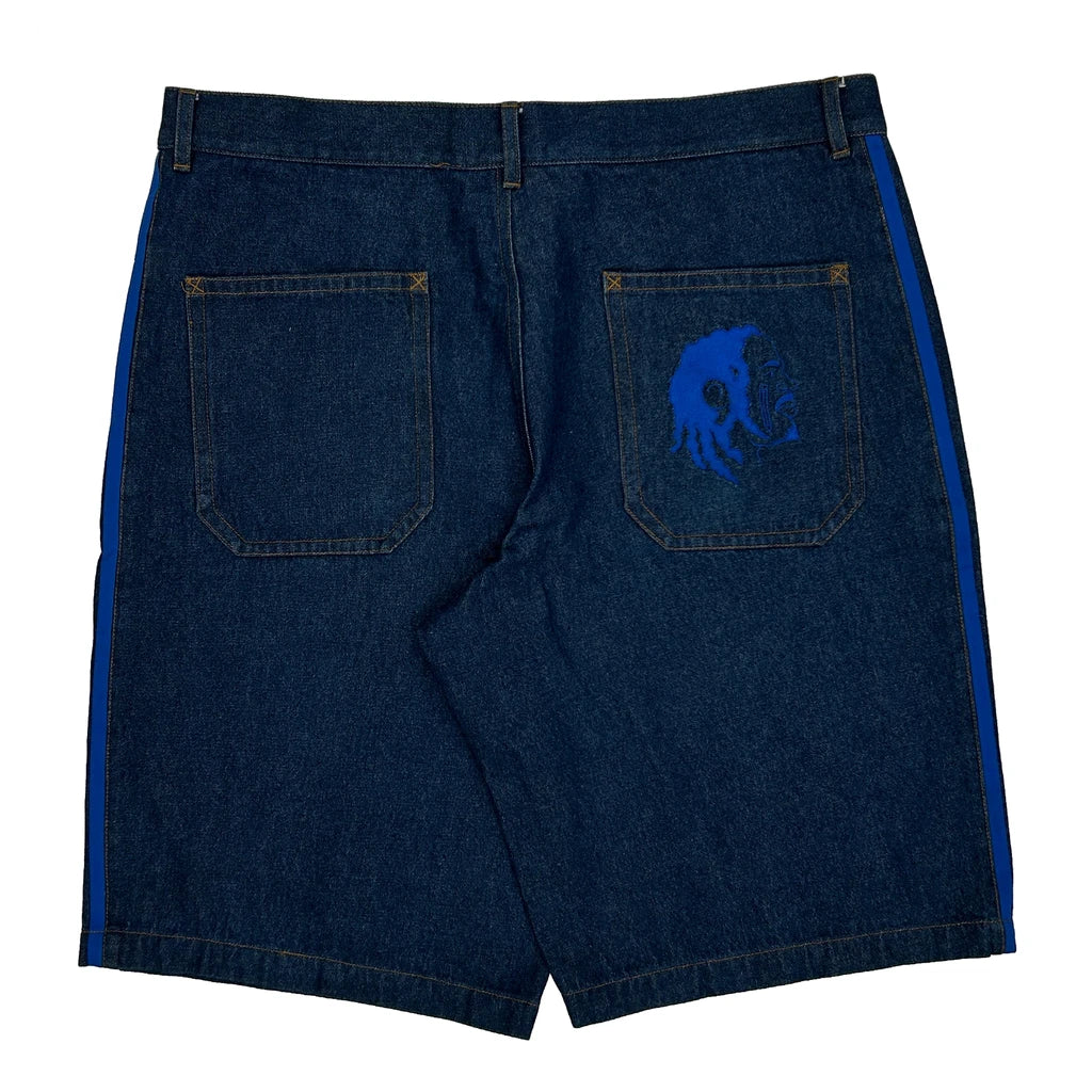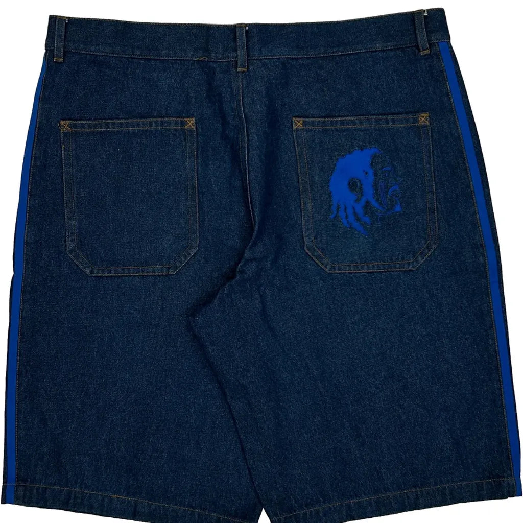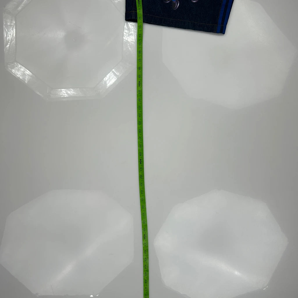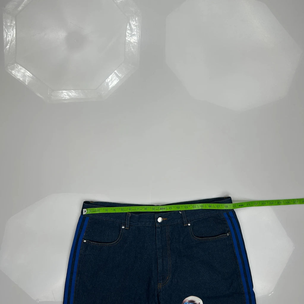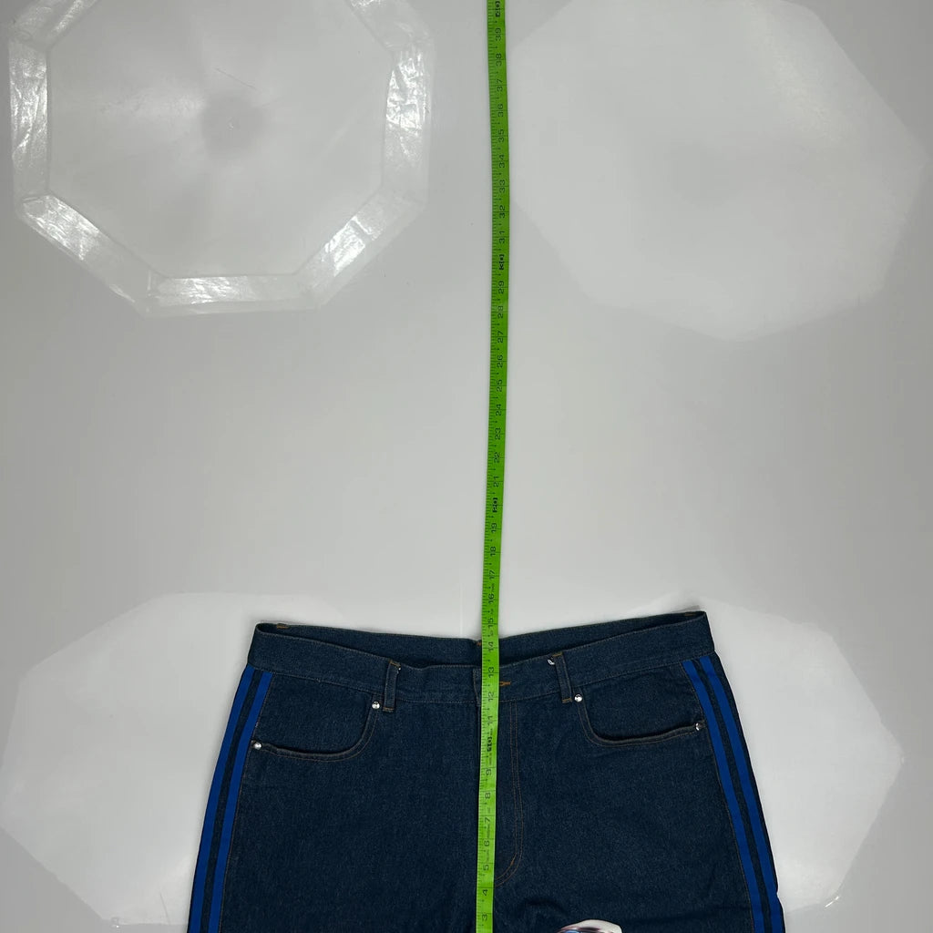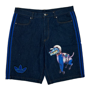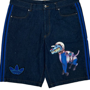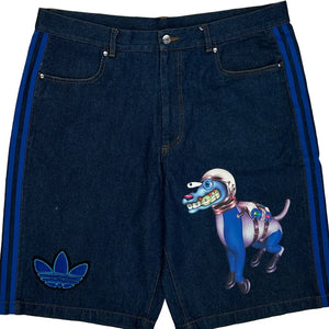 Kerwin Frost Adidas Baggy Graphic Denim Shorts - 38W 10L Blue Denim