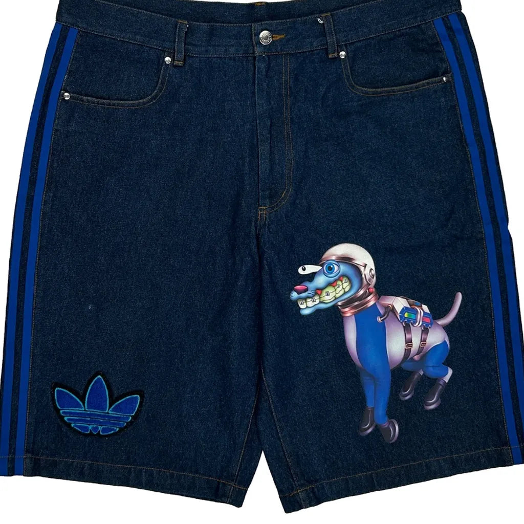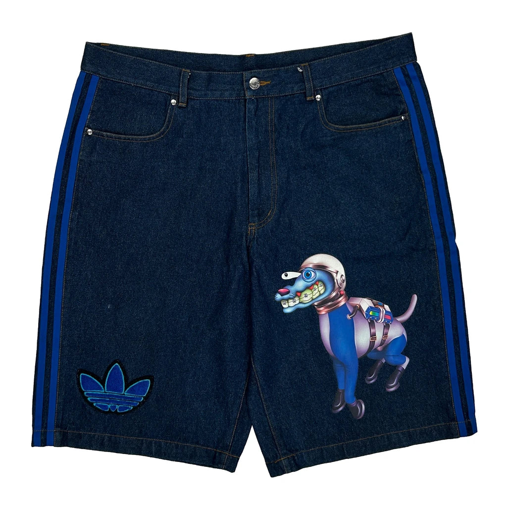 Adidas X Kerwin Frost Collaboration Denim Shorts With Graphic Print