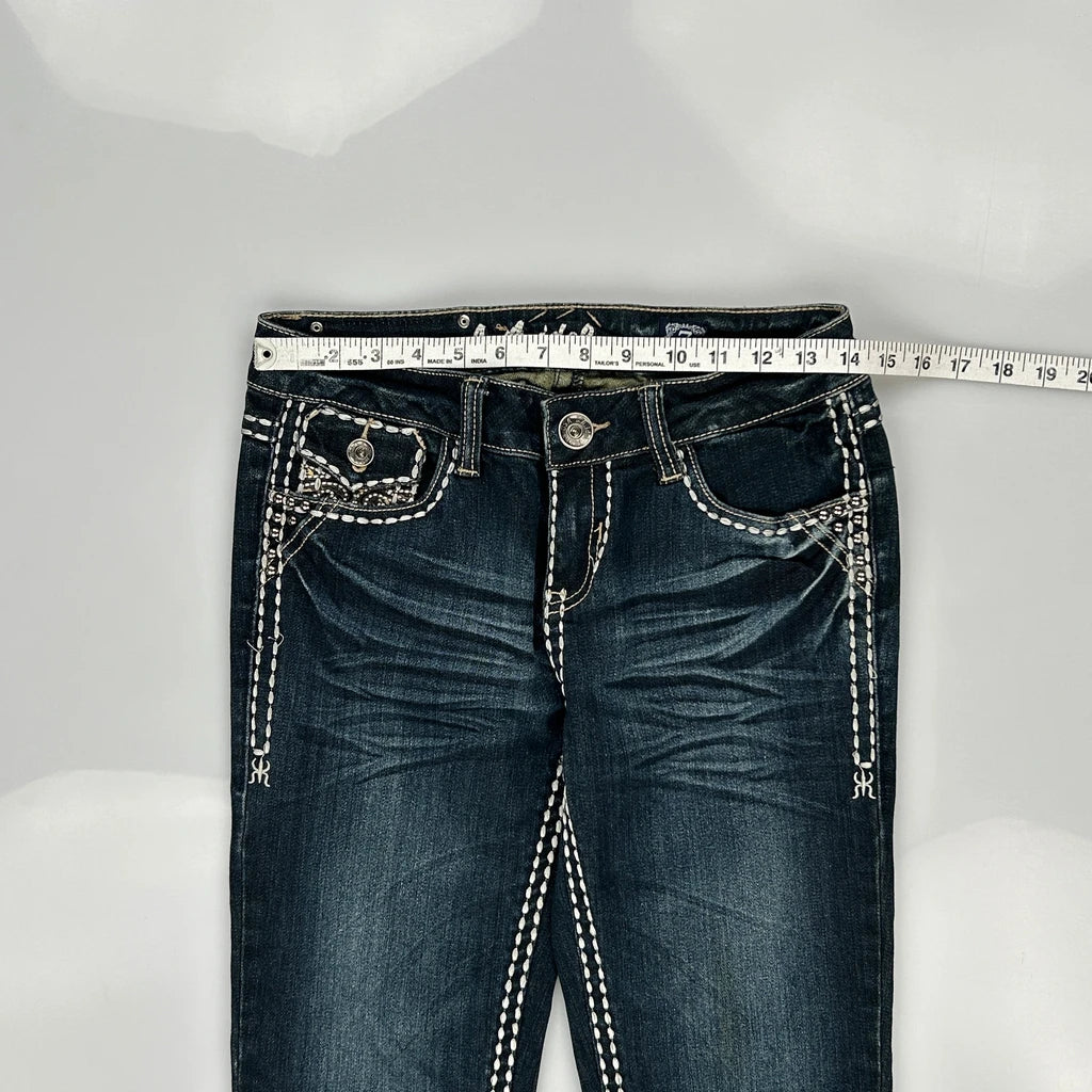 La Idol Studded Jeans - 26W UK 4 Dark Wash Cotton