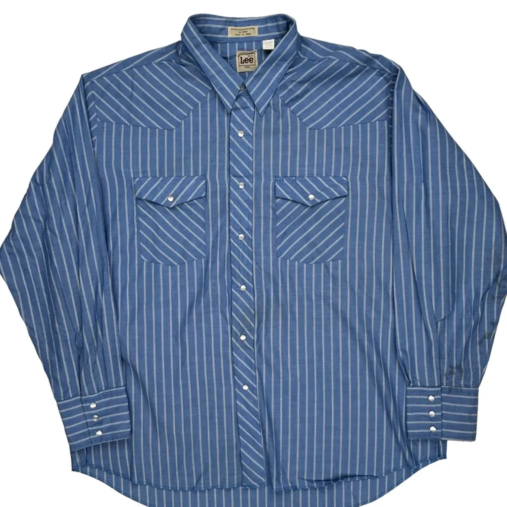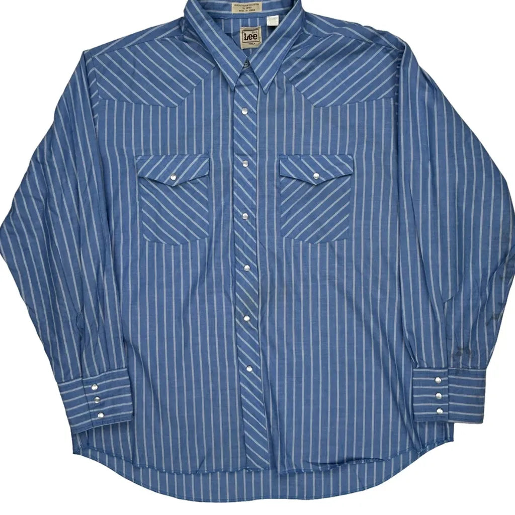 Lee Striped Shirt - 2XL Blue Polyester Blend
