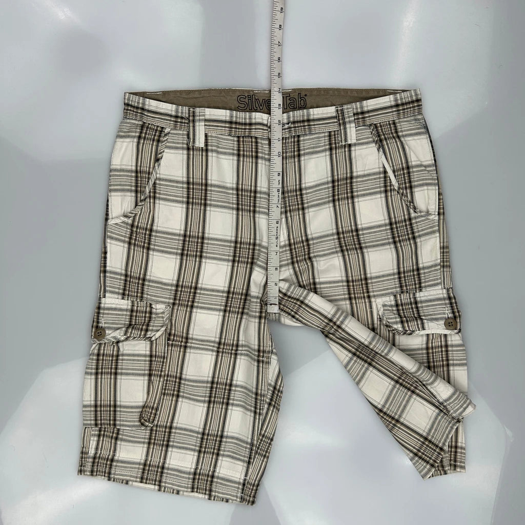 Levis Checked Cargo Shorts - 38W 12L Brown Cotton