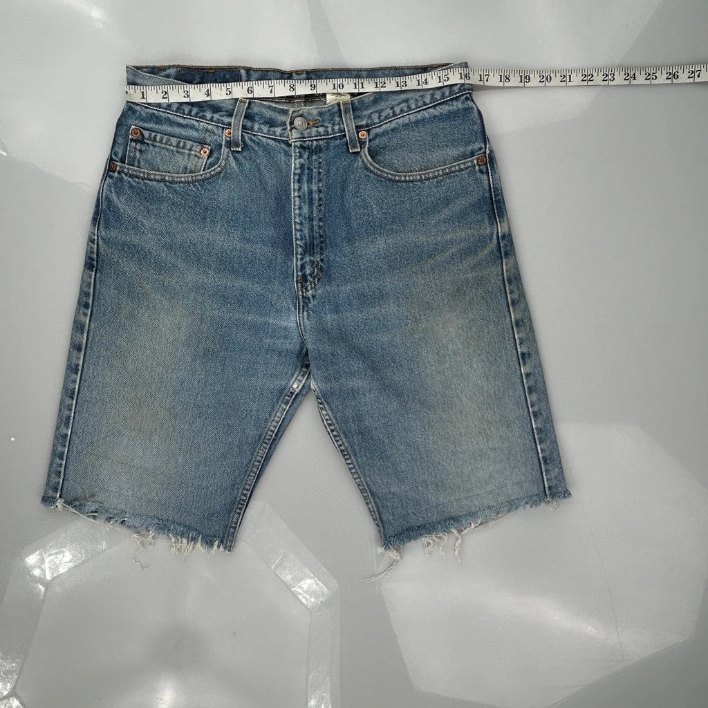 Levis Denim Shorts, fit a 30″ Waist and 10″ inseam.