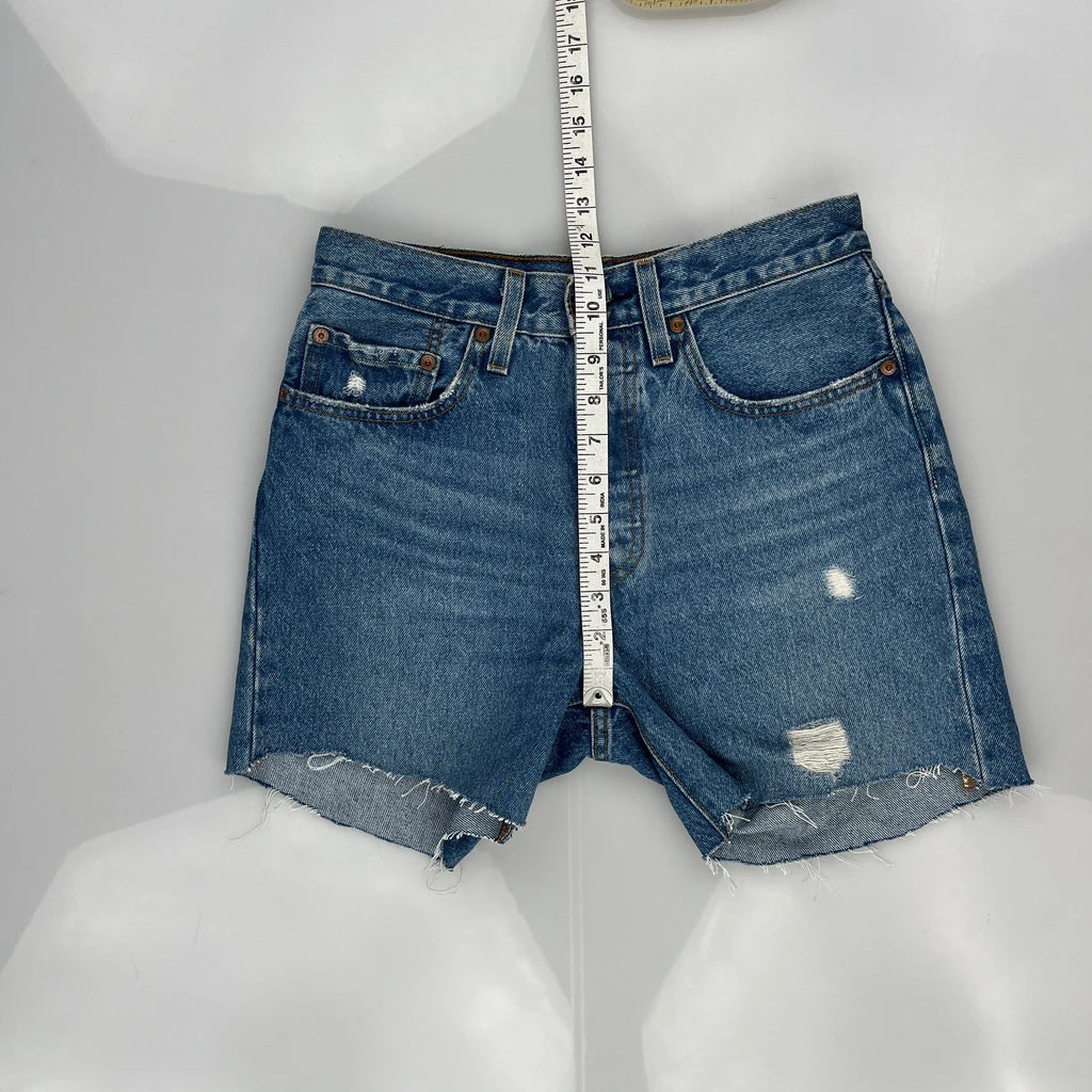 Levis Denim Shorts, fit a UK size 8 with a 28″ Waist.