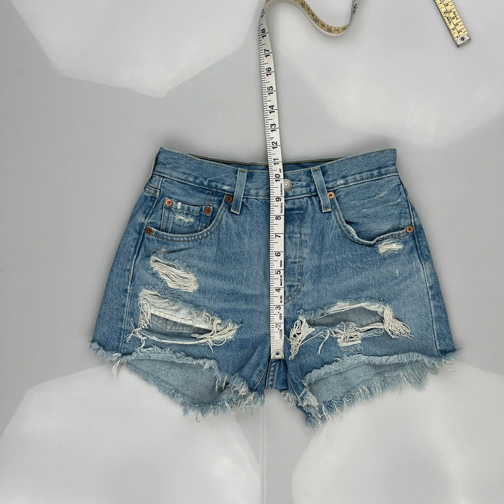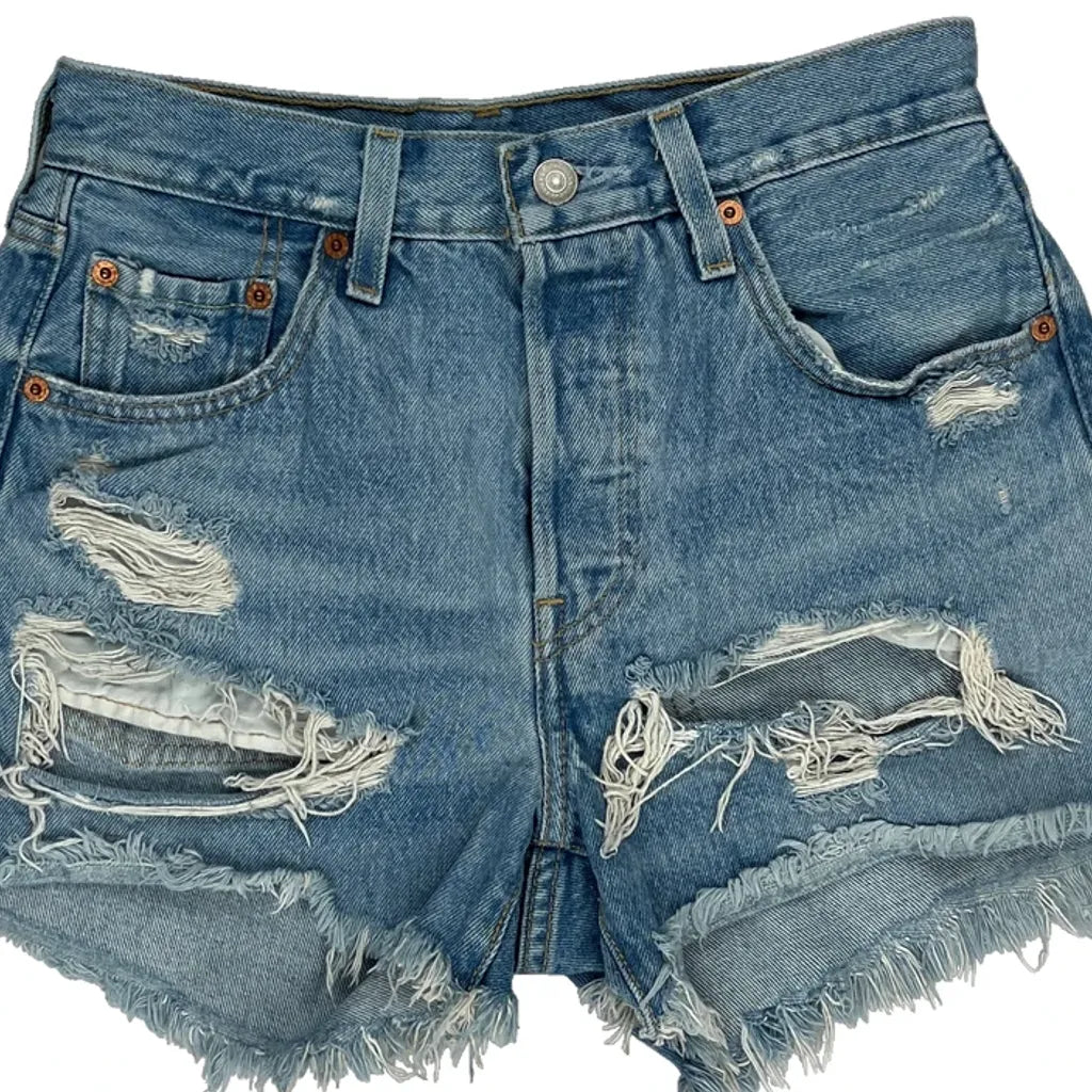 Levis Denim Shorts - 26W UK 6 Light Wash Cotton