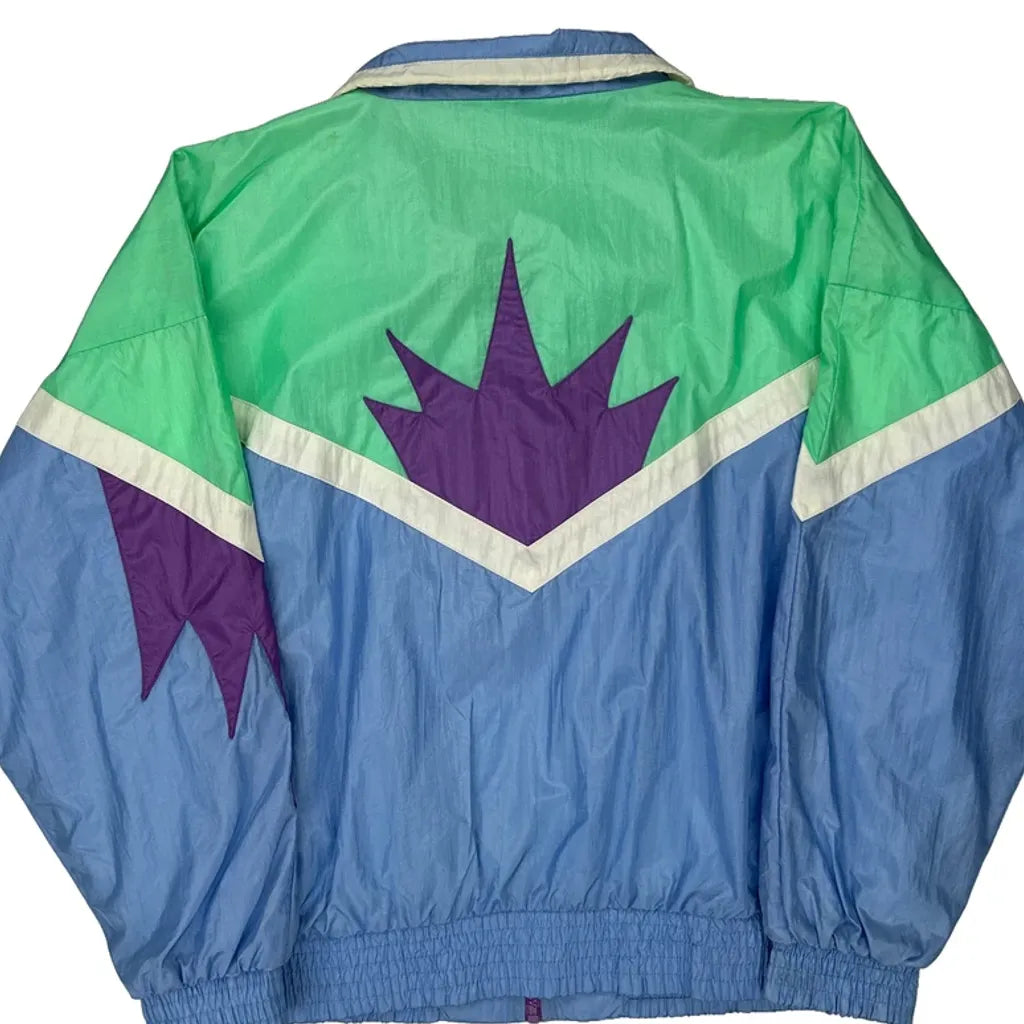 Colorful Retro Windbreaker With Abstract Pattern.