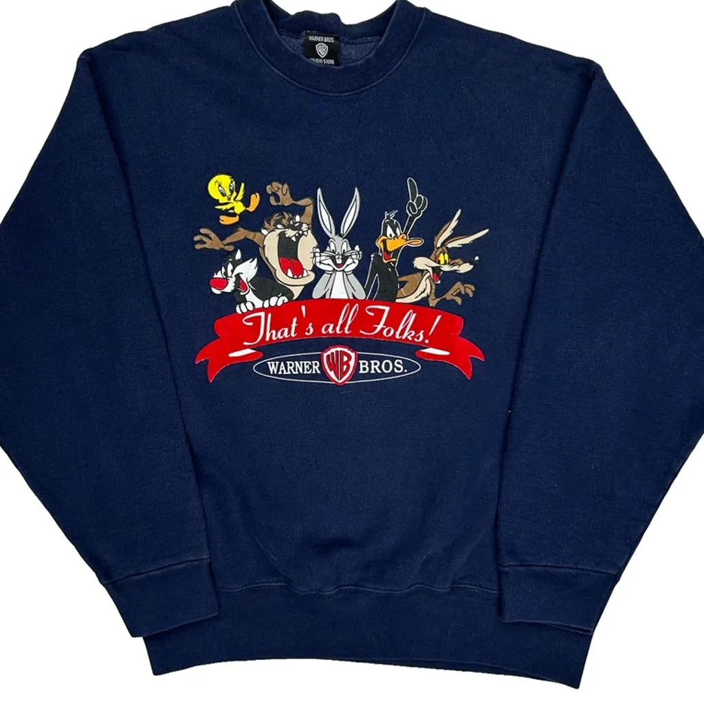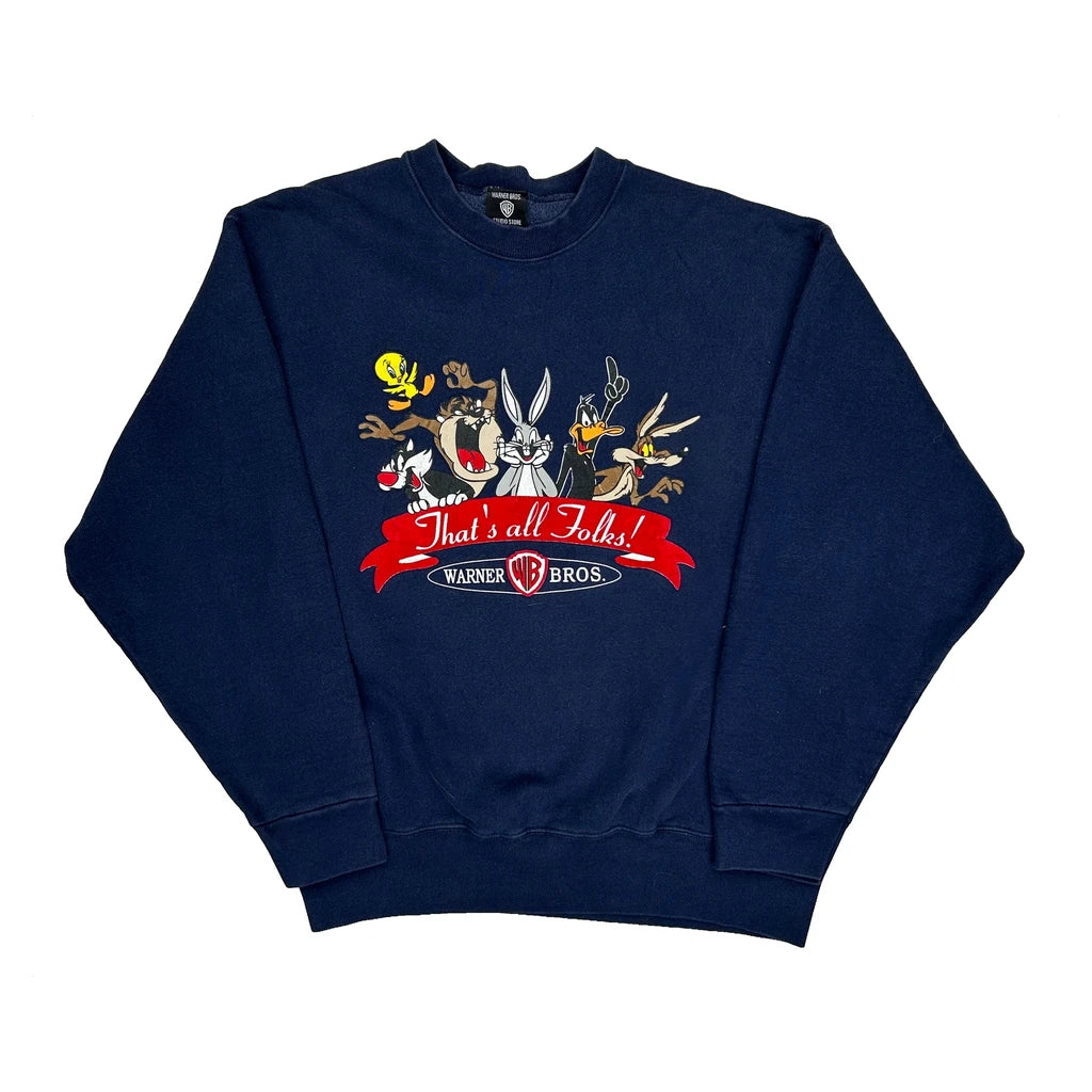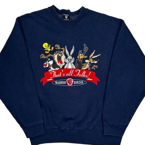 Looney Tunes Warner Bros Graphic Sweatshirt - Large Navy Cotton Blend
