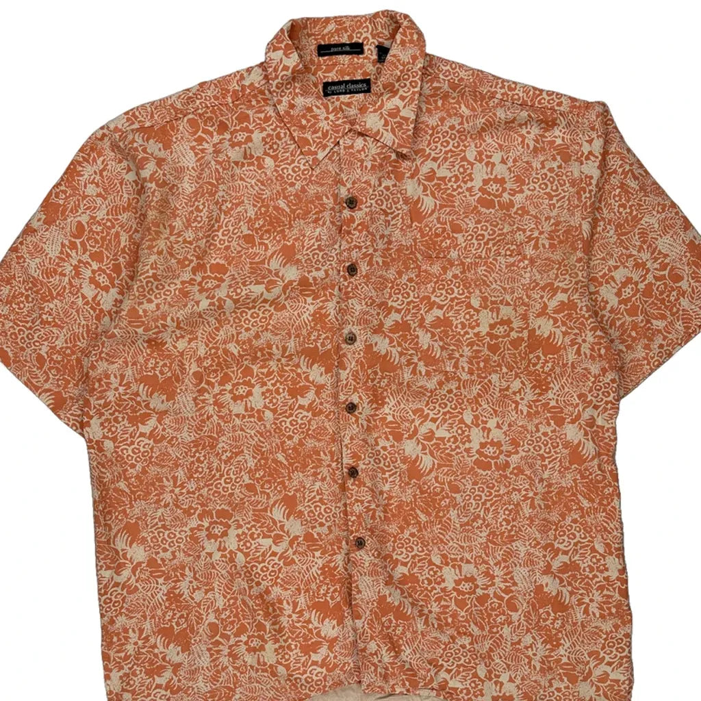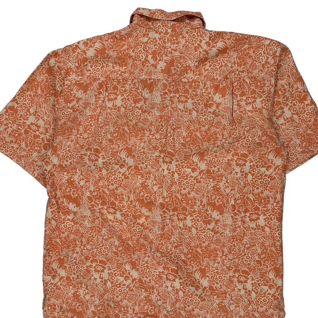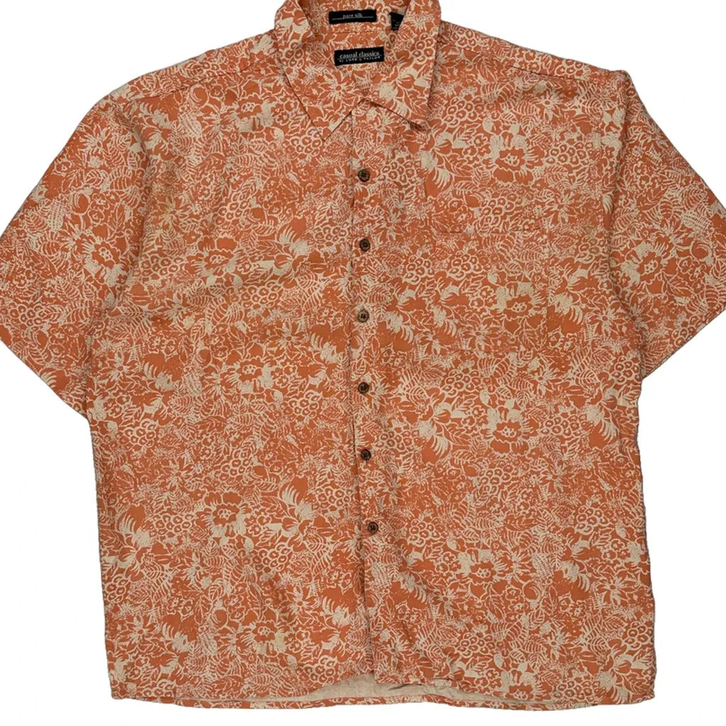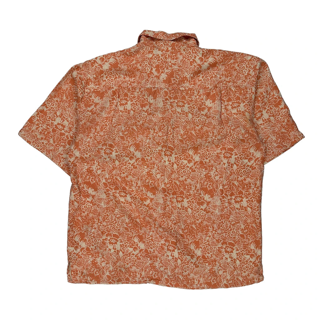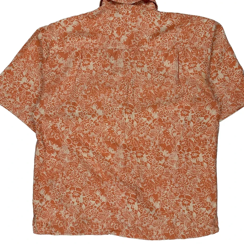 Lord & Taylor Floral Short Sleeve Shirt - XL Orange Silk