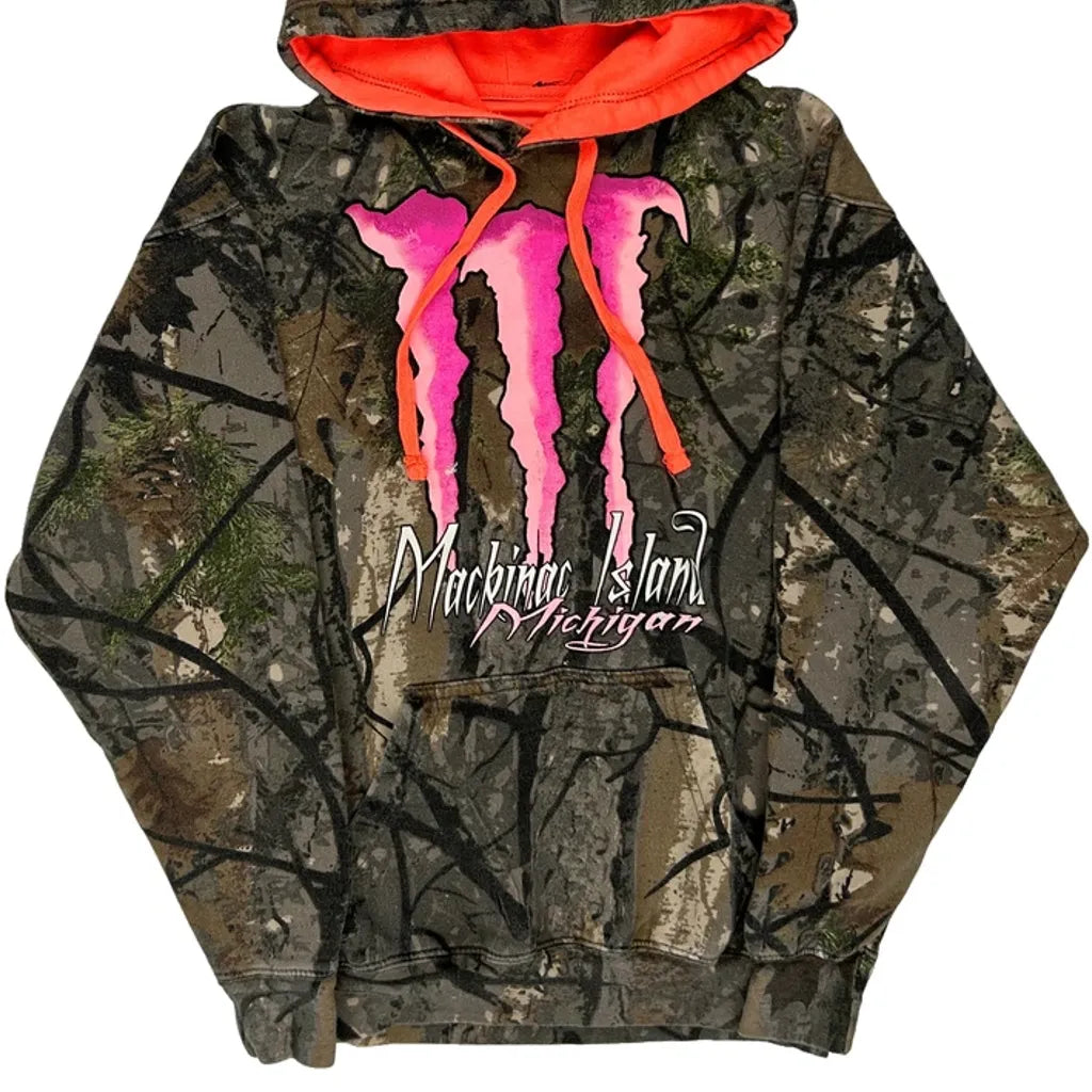Mackinac Island Michigan Unbranded Camo Hoodie - Small Orange Cotton Blend