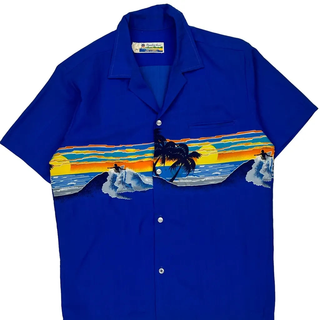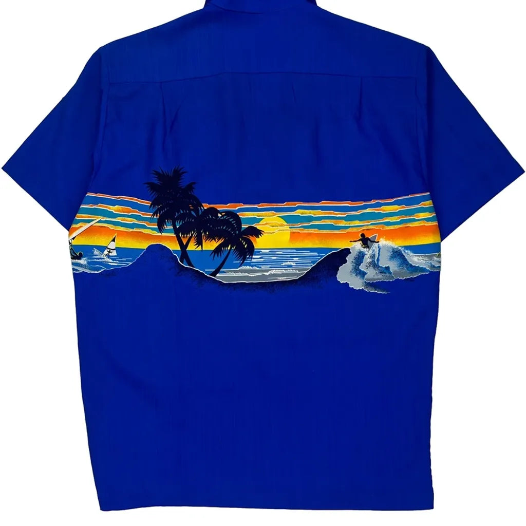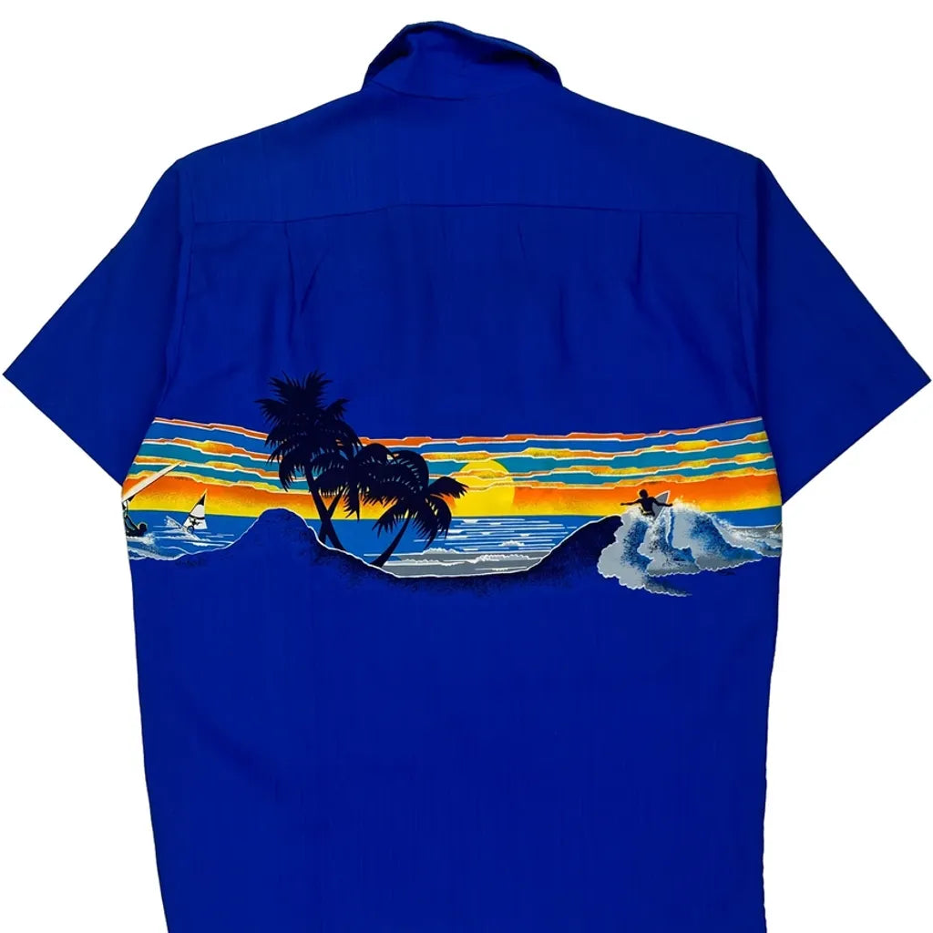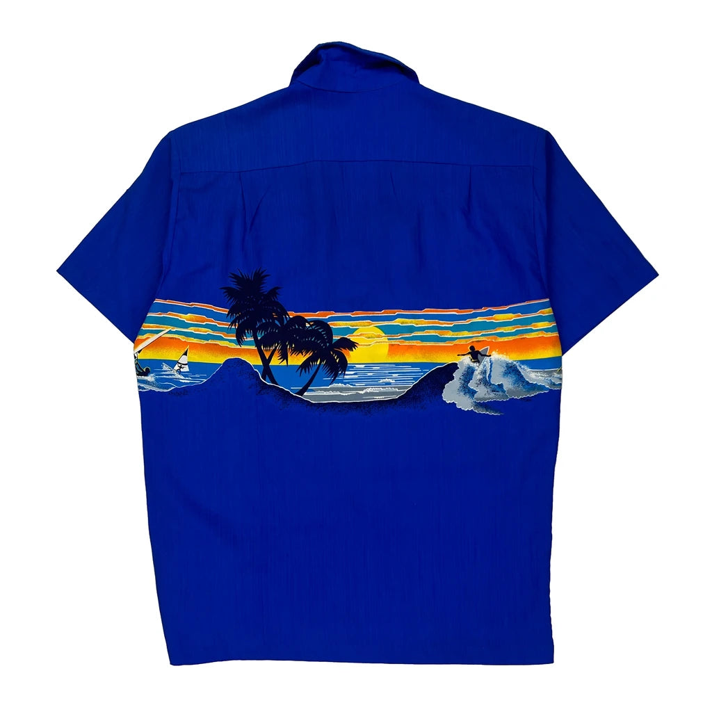 Made In Hawaii Sunset Shoreline Hawaii Graphic Hawaiian Shirt - Medium Blue Polyester